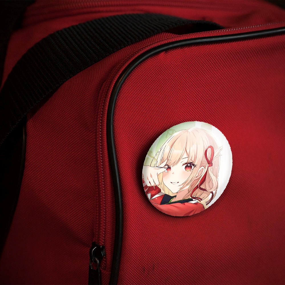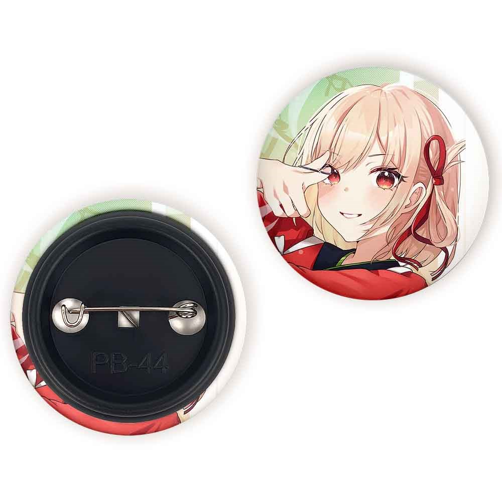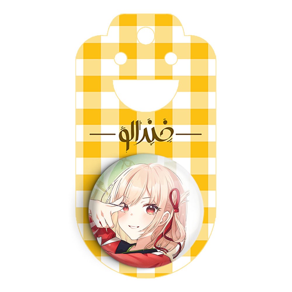 پیکسل 44 میلی متری چیساتو انیمه لیکوریس ریکویل Lycoris Recoil خندالو با روکش سلفون حرارتی مات مخملی ضدخش و قطعه پشتی رنگی تولید شده است.پلاستیکی پشت پیکسل با سوزن یک تکه ثابت و بدون لغزش و جا به جایی، ایستایی بسیار بهتری نسبت به پشتی فلزی پیکسل دارند که این مهم در تولید این محصول نیز رعایت شده است.