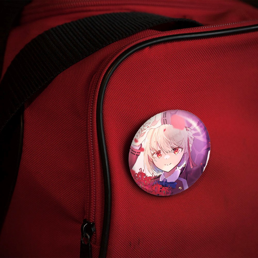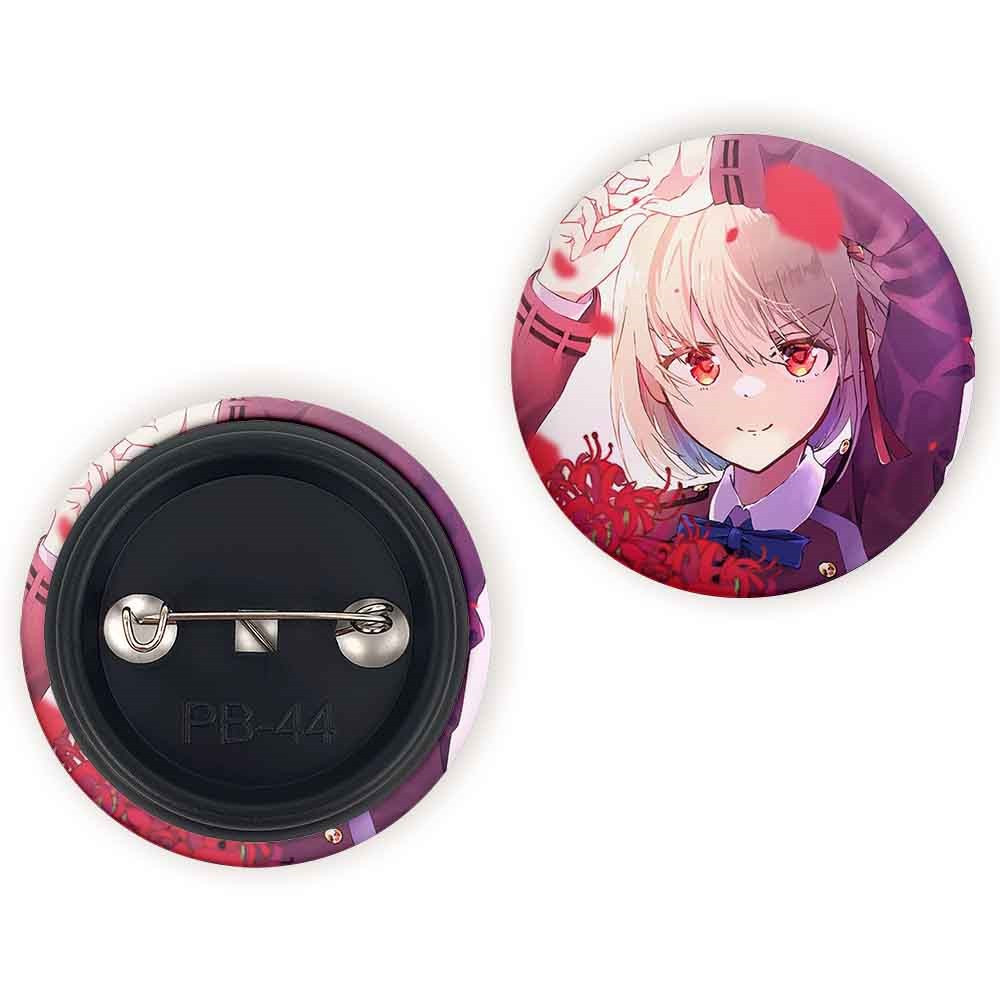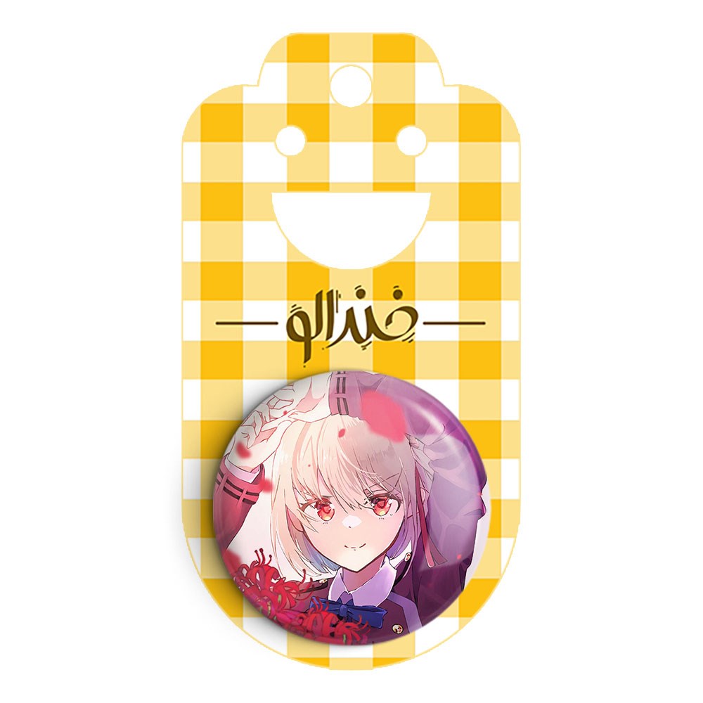 پیکسل 44 میلی متری چیساتو انیمه لیکوریس ریکویل Lycoris Recoil خندالو با روکش سلفون حرارتی مات مخملی ضدخش و قطعه پشتی رنگی تولید شده است.پلاستیکی پشت پیکسل با سوزن یک تکه ثابت و بدون لغزش و جا به جایی، ایستایی بسیار بهتری نسبت به پشتی فلزی پیکسل دارند که این مهم در تولید این محصول نیز رعایت شده است.