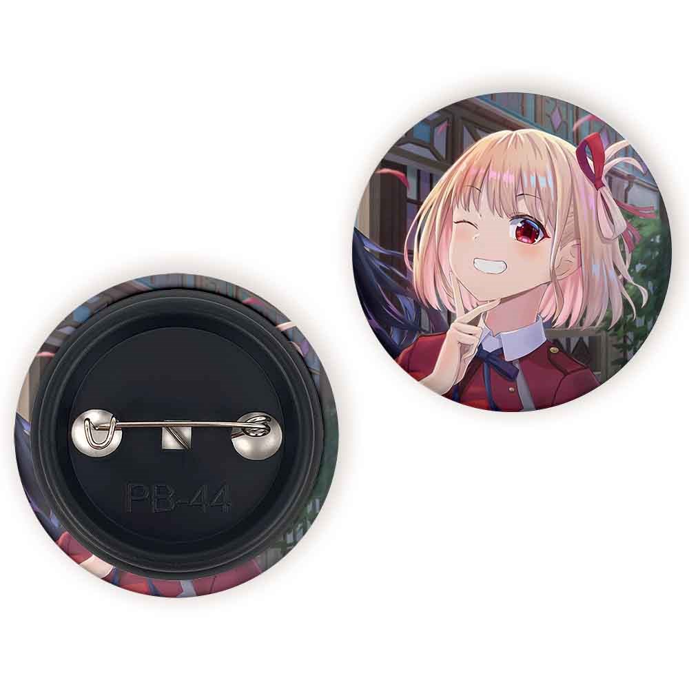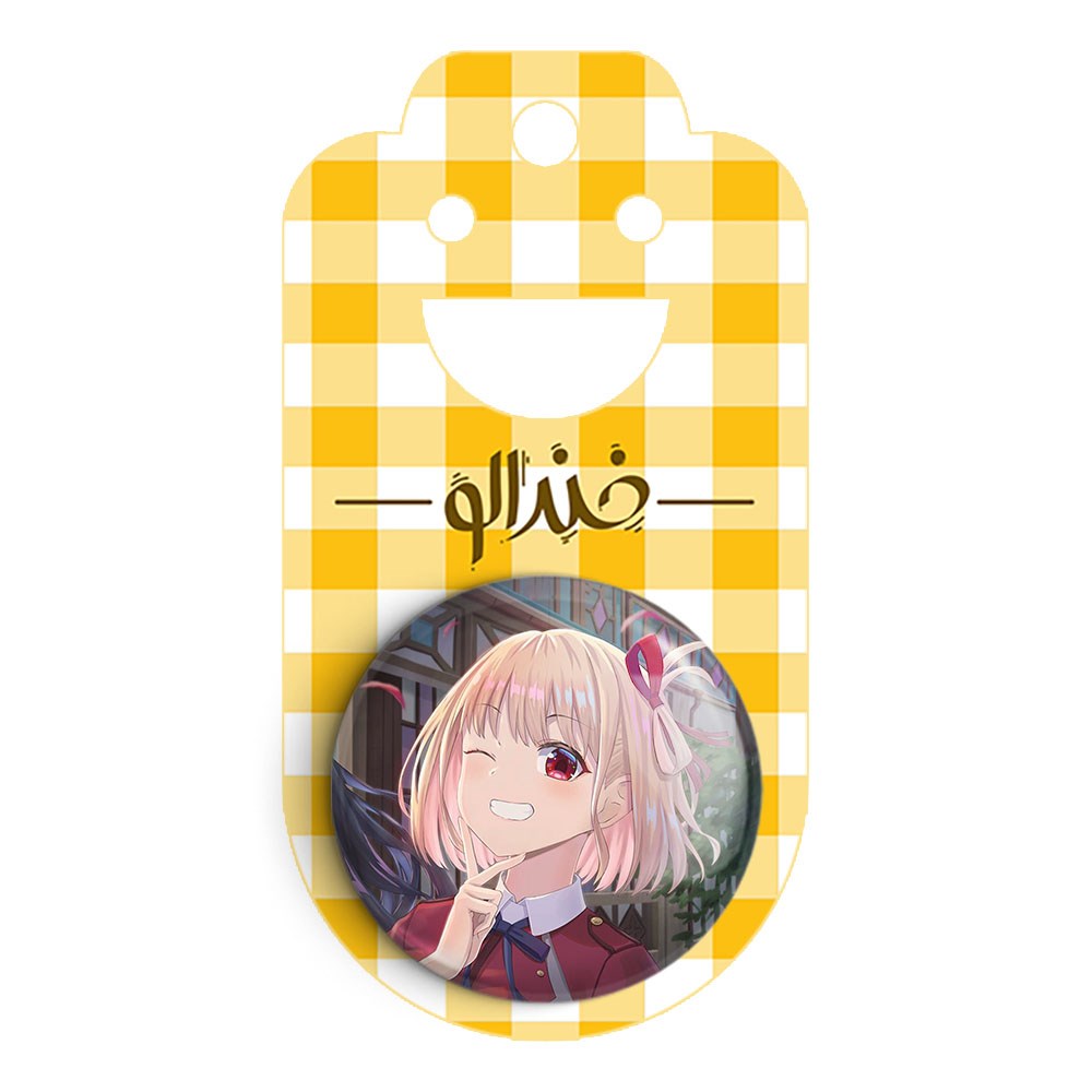 پیکسل 44 میلی متری چیساتو انیمه لیکوریس ریکویل Lycoris Recoil خندالو با روکش سلفون حرارتی مات مخملی ضدخش و قطعه پشتی رنگی تولید شده است.پلاستیکی پشت پیکسل با سوزن یک تکه ثابت و بدون لغزش و جا به جایی، ایستایی بسیار بهتری نسبت به پشتی فلزی پیکسل دارند که این مهم در تولید این محصول نیز رعایت شده است.
