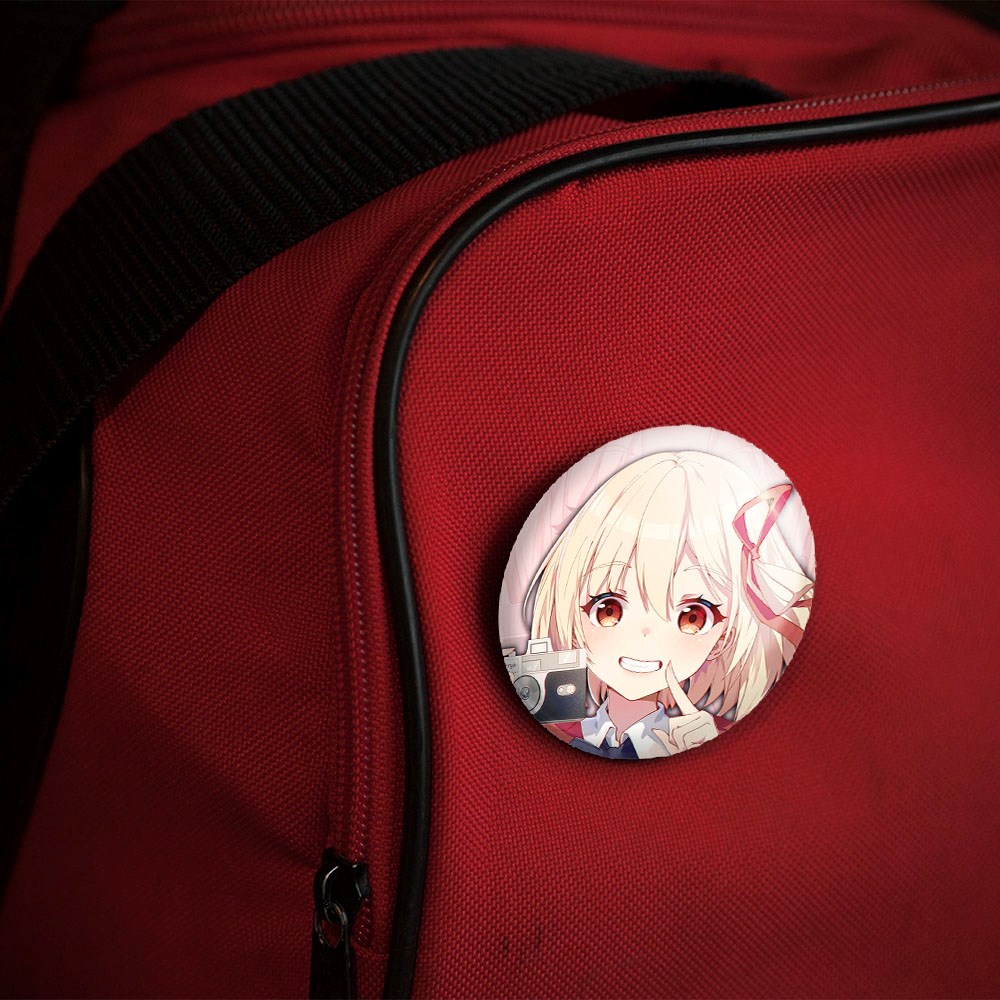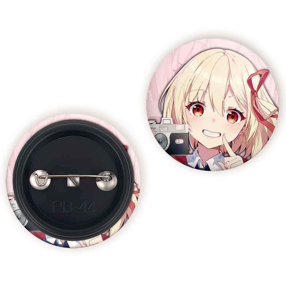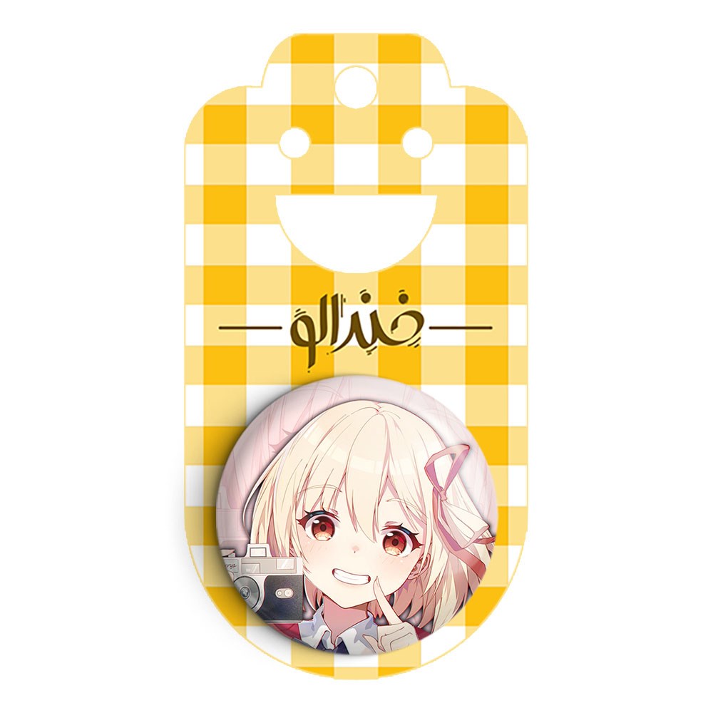 پیکسل 44 میلی متری چیساتو انیمه لیکوریس ریکویل Lycoris Recoil خندالو با روکش سلفون حرارتی مات مخملی ضدخش و قطعه پشتی رنگی تولید شده است.پلاستیکی پشت پیکسل با سوزن یک تکه ثابت و بدون لغزش و جا به جایی، ایستایی بسیار بهتری نسبت به پشتی فلزی پیکسل دارند که این مهم در تولید این محصول نیز رعایت شده است.