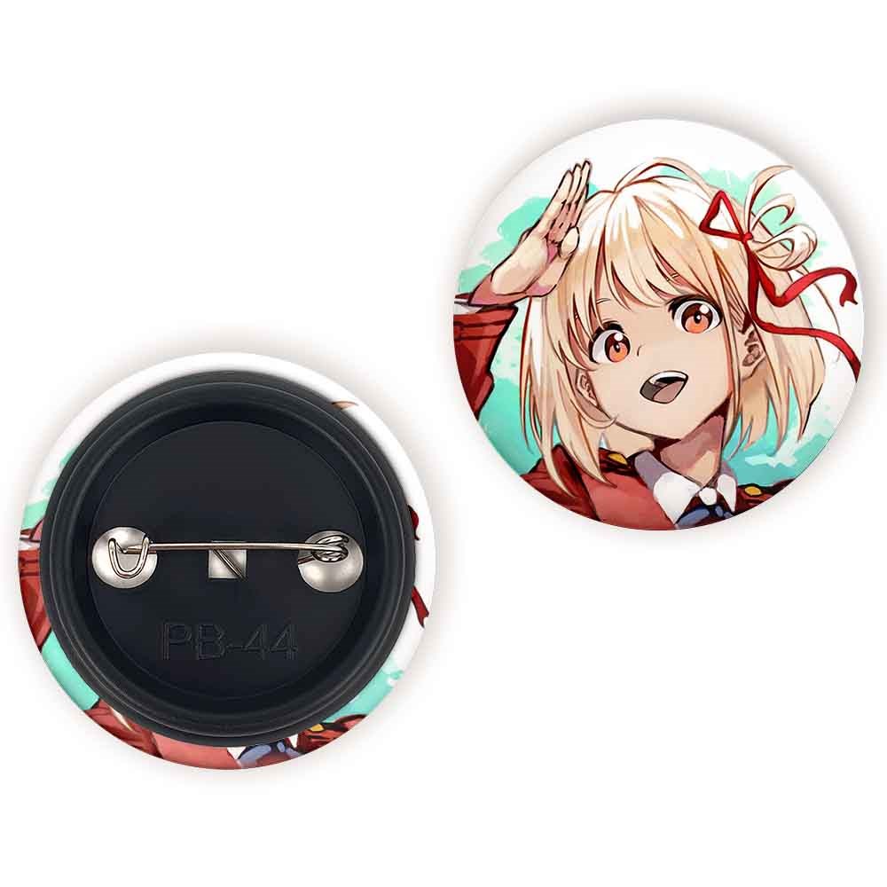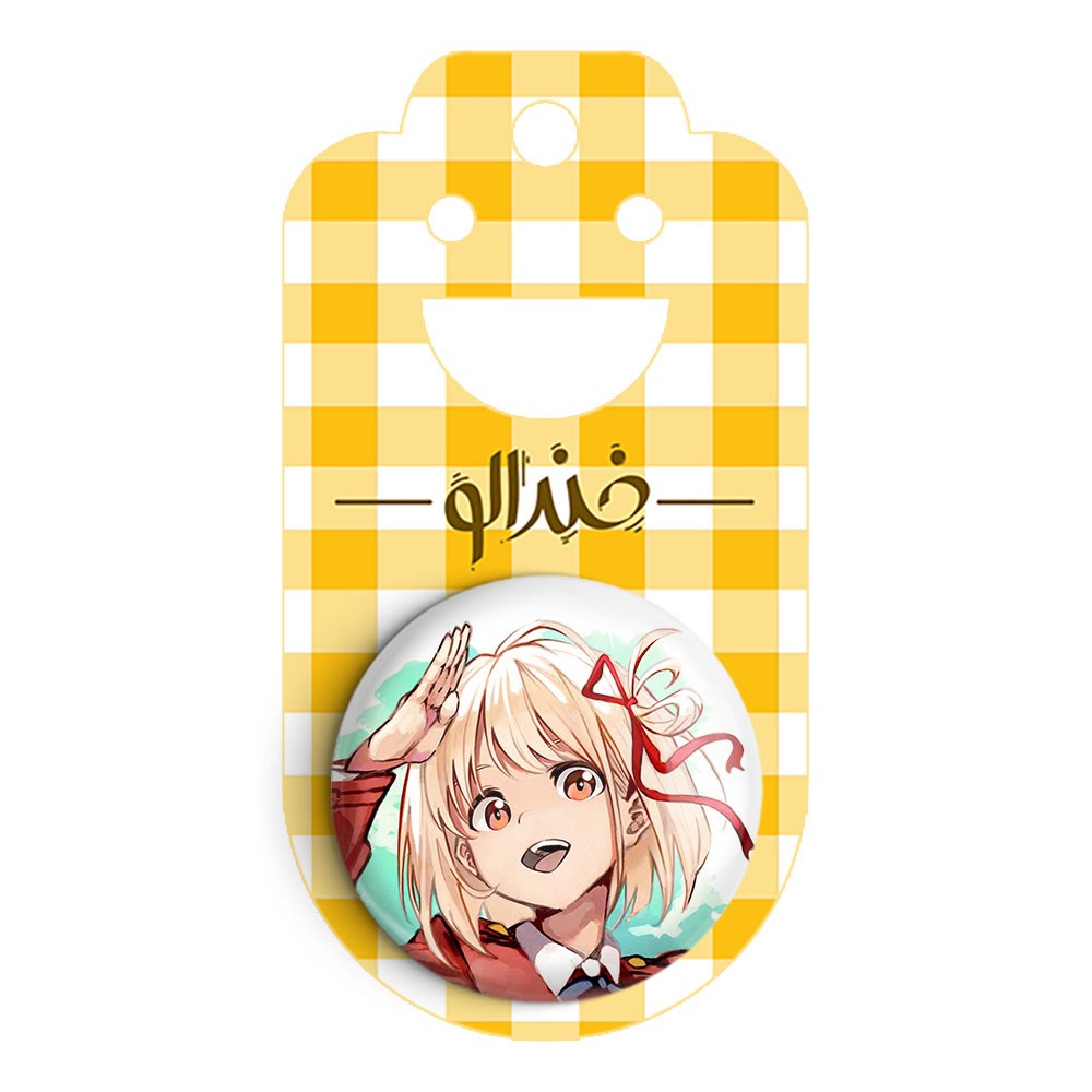 پیکسل 44 میلی متری چیساتو انیمه لیکوریس ریکویل Lycoris Recoil خندالو با روکش سلفون حرارتی مات مخملی ضدخش و قطعه پشتی رنگی تولید شده است.پلاستیکی پشت پیکسل با سوزن یک تکه ثابت و بدون لغزش و جا به جایی، ایستایی بسیار بهتری نسبت به پشتی فلزی پیکسل دارند که این مهم در تولید این محصول نیز رعایت شده است.