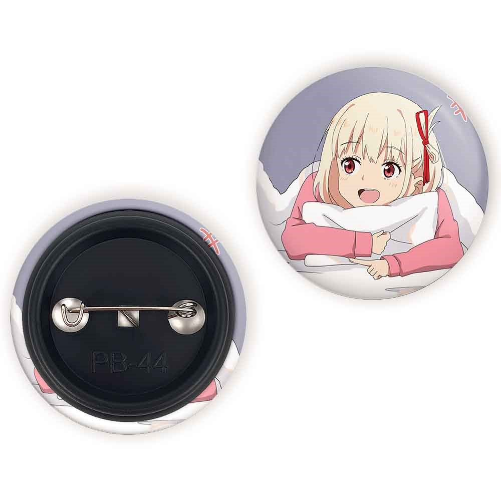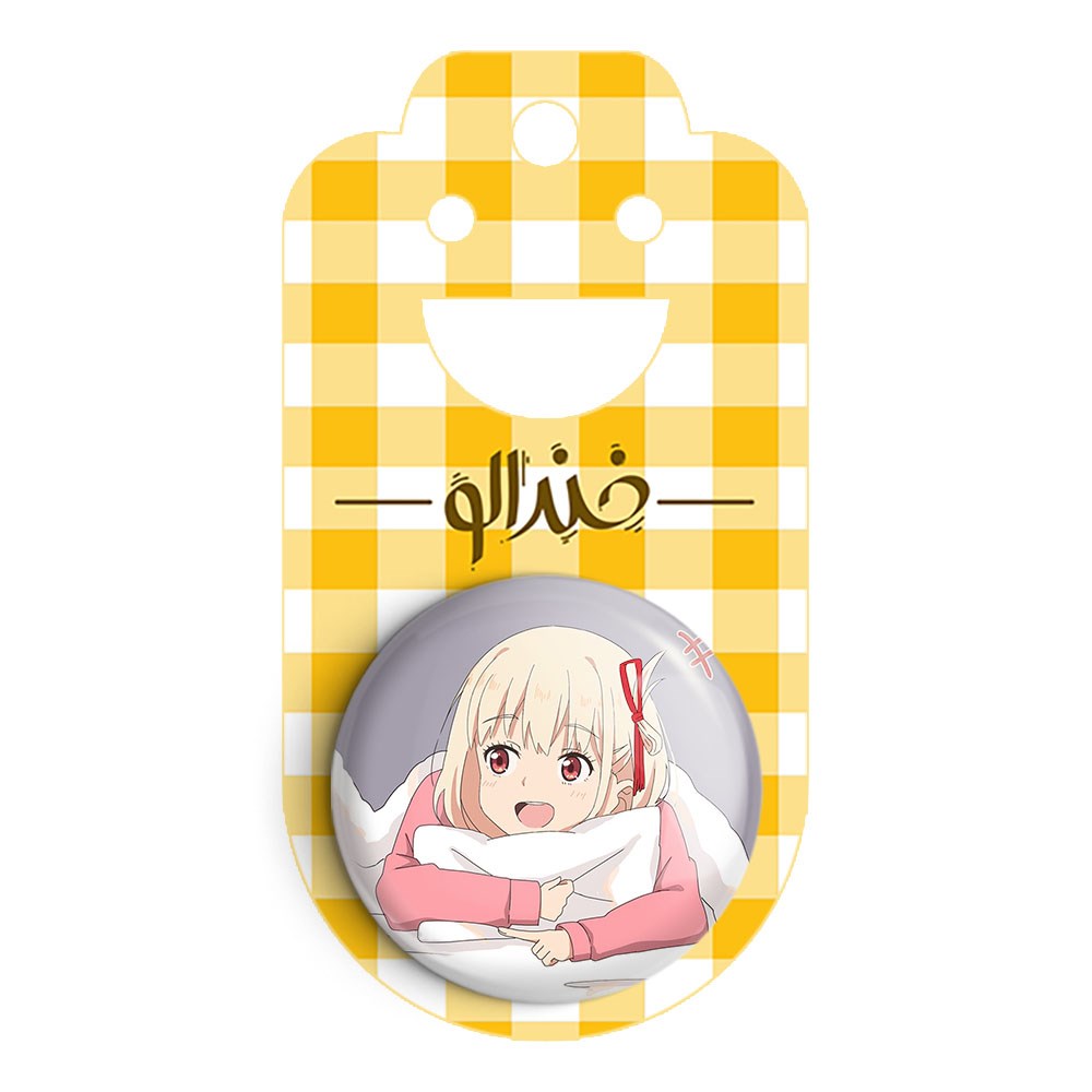 پیکسل 44 میلی متری چیساتو انیمه لیکوریس ریکویل Lycoris Recoil خندالو با روکش سلفون حرارتی مات مخملی ضدخش و قطعه پشتی رنگی تولید شده است.پلاستیکی پشت پیکسل با سوزن یک تکه ثابت و بدون لغزش و جا به جایی، ایستایی بسیار بهتری نسبت به پشتی فلزی پیکسل دارند که این مهم در تولید این محصول نیز رعایت شده است.