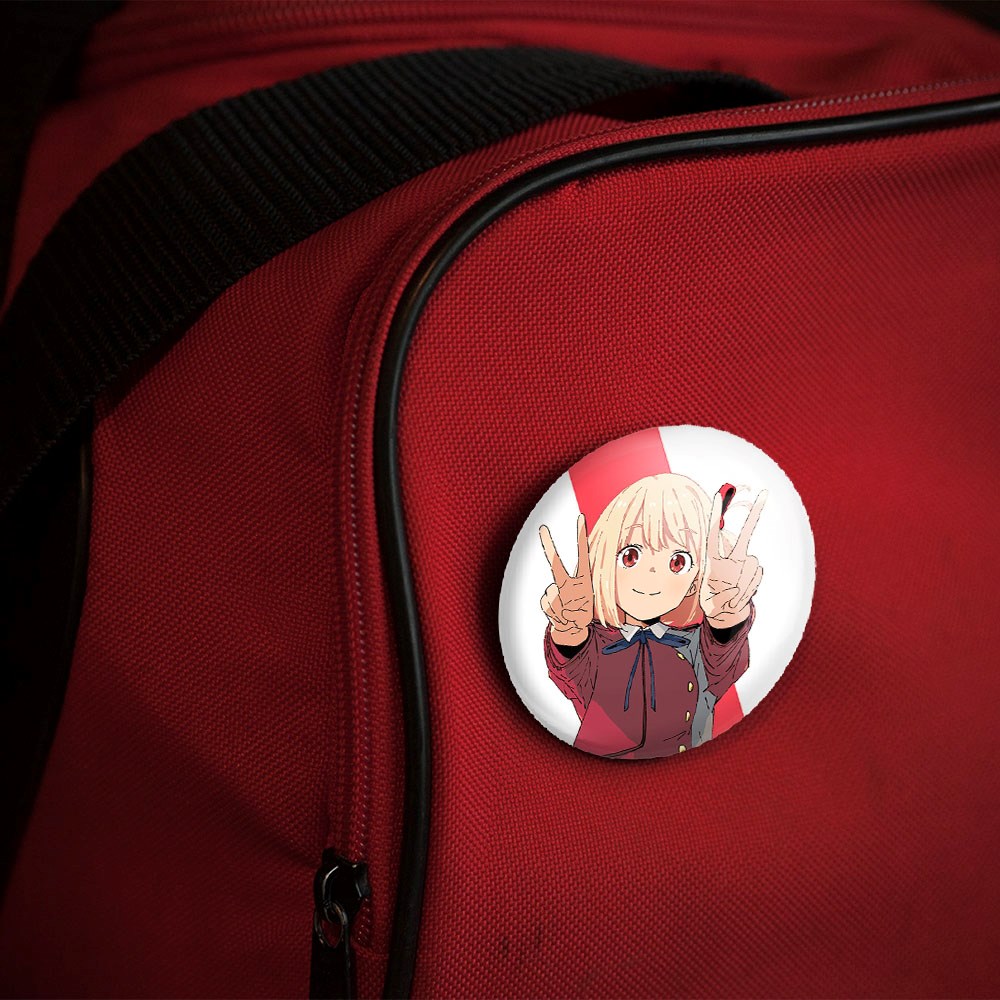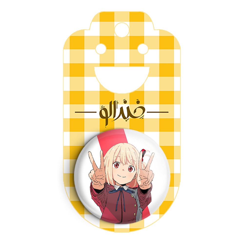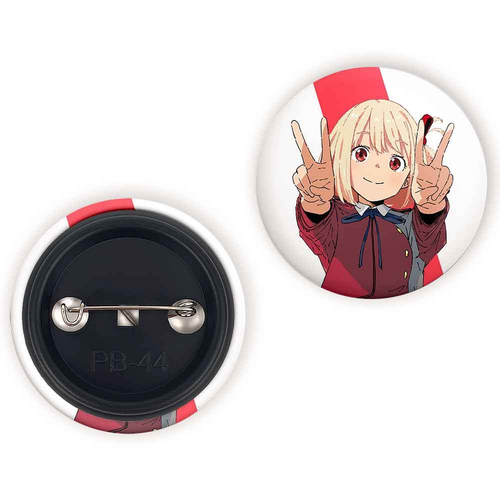 پیکسل 44 میلی متری چیساتو انیمه لیکوریس ریکویل Lycoris Recoil خندالو با روکش سلفون حرارتی مات مخملی ضدخش و قطعه پشتی رنگی تولید شده است.پلاستیکی پشت پیکسل با سوزن یک تکه ثابت و بدون لغزش و جا به جایی، ایستایی بسیار بهتری نسبت به پشتی فلزی پیکسل دارند که این مهم در تولید این محصول نیز رعایت شده است.