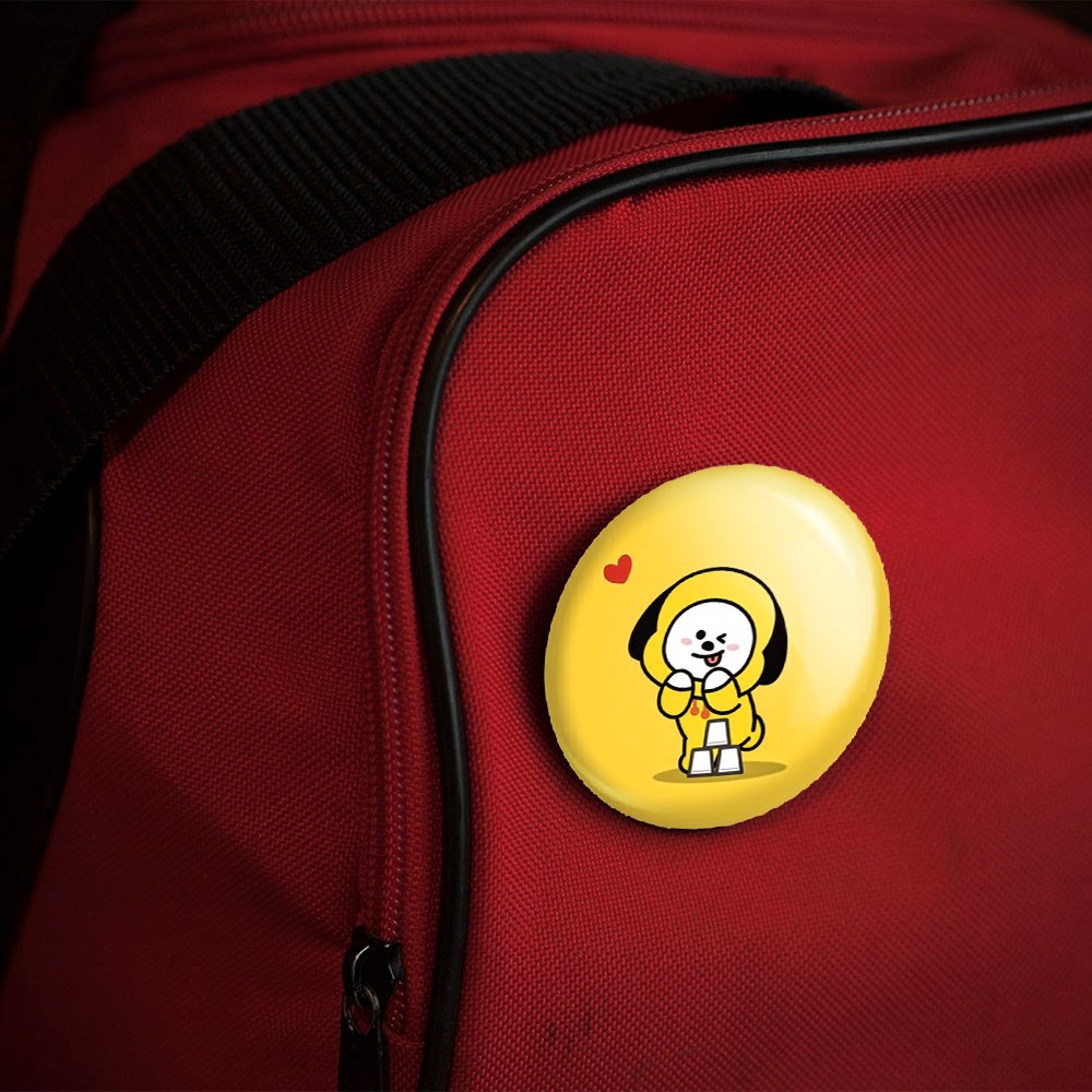 پیکسل 44 میلی متری چیمی BT21 Chimmy خندالو با روکش سلفون حرارتی مات مخملی ضدخش و قطعه پشتی رنگی تولید شده است.پلاستیکی پشت پیکسل با سوزن یک تکه ثابت و بدون لغزش و جا به جایی، ایستایی بسیار بهتری نسبت به پشتی فلزی پیکسل دارند که این مهم در تولید این محصول نیز رعایت شده است.