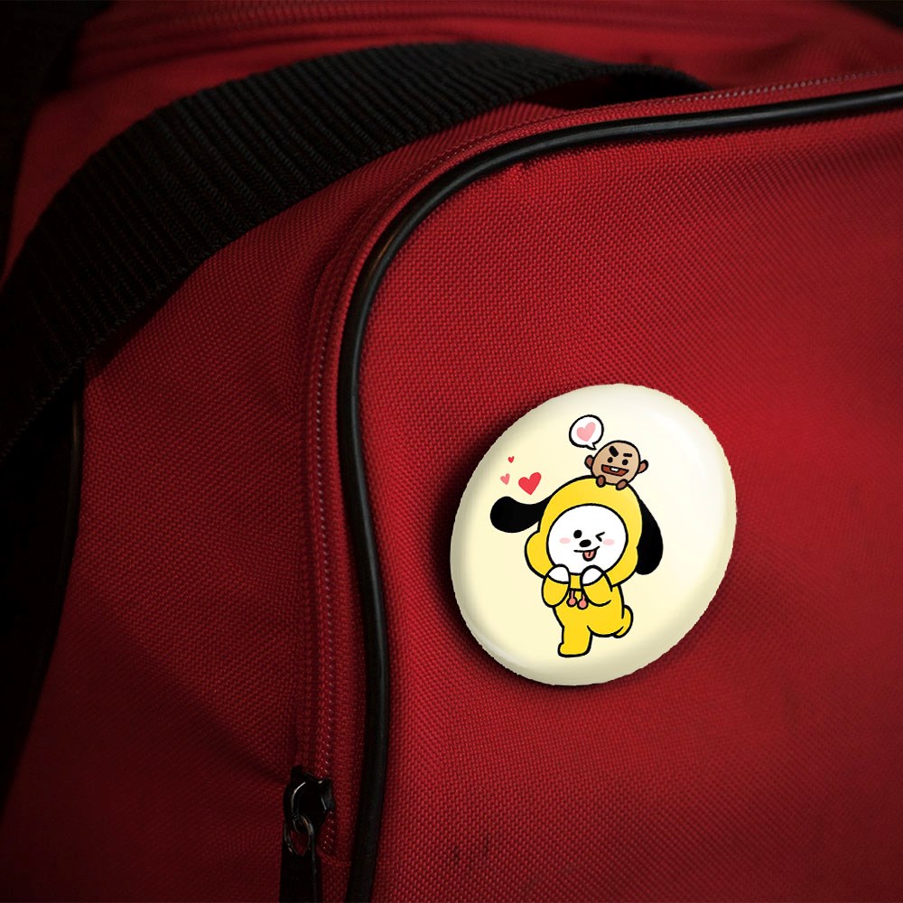 پیکسل 44 میلی متری چیمی BT21 Chimmy خندالو با روکش سلفون حرارتی مات مخملی ضدخش و قطعه پشتی رنگی تولید شده است.پلاستیکی پشت پیکسل با سوزن یک تکه ثابت و بدون لغزش و جا به جایی، ایستایی بسیار بهتری نسبت به پشتی فلزی پیکسل دارند که این مهم در تولید این محصول نیز رعایت شده است.
