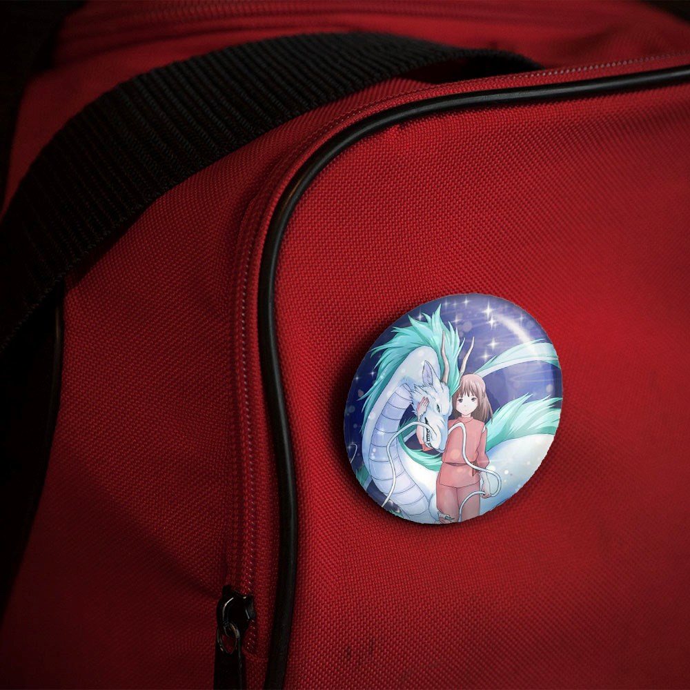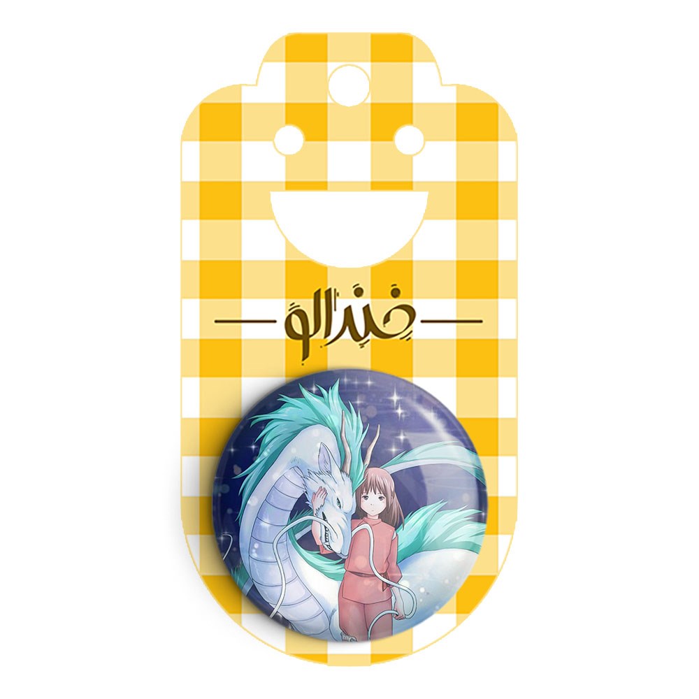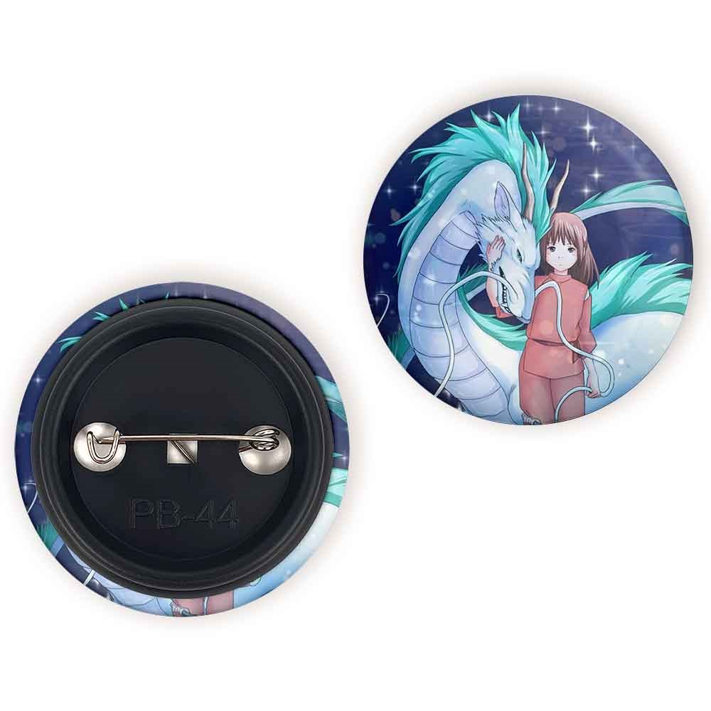 پیکسل 44 میلی متری چیهیرو و هاکو انیمه شهر اشباح Spirited Away خندالو با روکش سلفون حرارتی مات مخملی ضدخش و قطعه پشتی رنگی تولید شده است.پلاستیکی پشت پیکسل با سوزن یک تکه ثابت و بدون لغزش و جا به جایی، ایستایی بسیار بهتری نسبت به پشتی فلزی پیکسل دارند که این مهم در تولید این محصول نیز رعایت شده است.