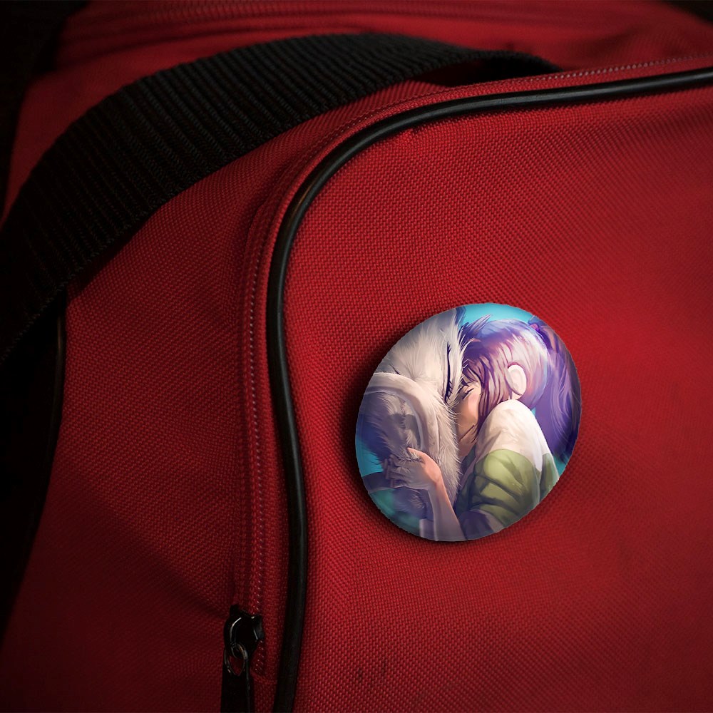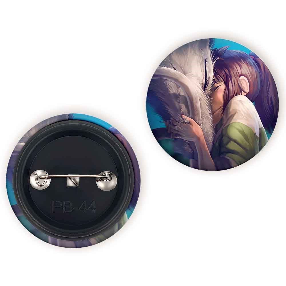 پیکسل 44 میلی متری چیهیرو و هاکو انیمه شهر اشباح Spirited Away خندالو با روکش سلفون حرارتی مات مخملی ضدخش و قطعه پشتی رنگی تولید شده است.پلاستیکی پشت پیکسل با سوزن یک تکه ثابت و بدون لغزش و جا به جایی، ایستایی بسیار بهتری نسبت به پشتی فلزی پیکسل دارند که این مهم در تولید این محصول نیز رعایت شده است.