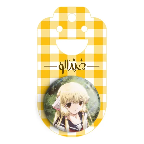 پیکسل 44 میلی متری چی انیمه چوبیتس Chobits خندالو با روکش سلفون حرارتی مات مخملی ضدخش و قطعه پشتی رنگی تولید شده است.پلاستیکی پشت پیکسل با سوزن یک تکه ثابت و بدون لغزش و جا به جایی، ایستایی بسیار بهتری نسبت به پشتی فلزی پیکسل دارند که این مهم در تولید این محصول نیز رعایت شده است.