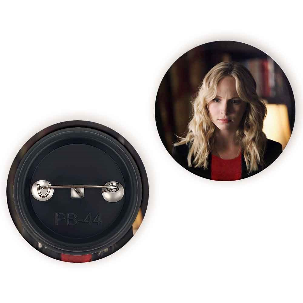 پیکسل 44 میلی متری کارولاین فوربز خاطرات یک خون آشام The Vampire Diaries خندالو با روکش سلفون حرارتی مات مخملی ضدخش و قطعه پشتی رنگی تولید شده است.پلاستیکی پشت پیکسل با سوزن یک تکه ثابت و بدون لغزش و جا به جایی، ایستایی بسیار بهتری نسبت به پشتی فلزی پیکسل دارند که این مهم در تولید این محصول نیز رعایت شده است.