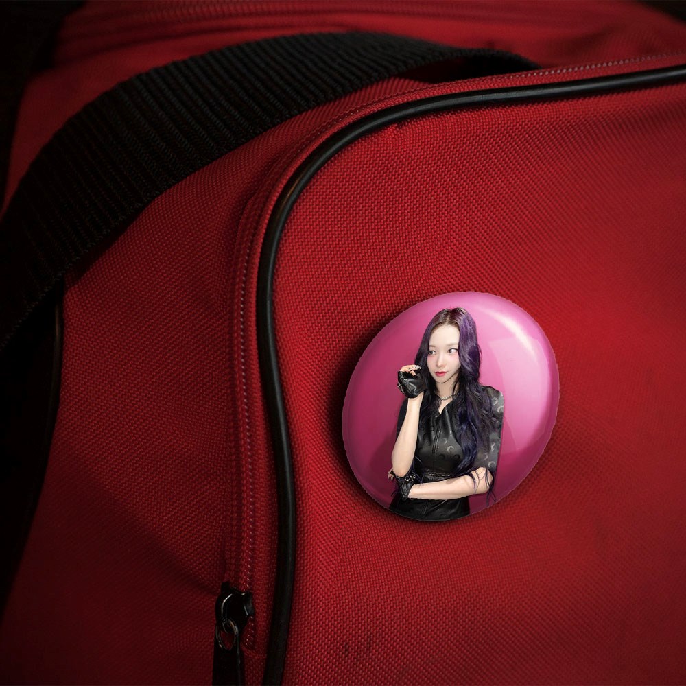 پیکسل 44 میلی متری کارینا گروه گروه آسپا Aespa خندالو با روکش سلفون حرارتی مات مخملی ضدخش و قطعه پشتی رنگی تولید شده است.پلاستیکی پشت پیکسل با سوزن یک تکه ثابت و بدون لغزش و جا به جایی، ایستایی بسیار بهتری نسبت به پشتی فلزی پیکسل دارند که این مهم در تولید این محصول نیز رعایت شده است.