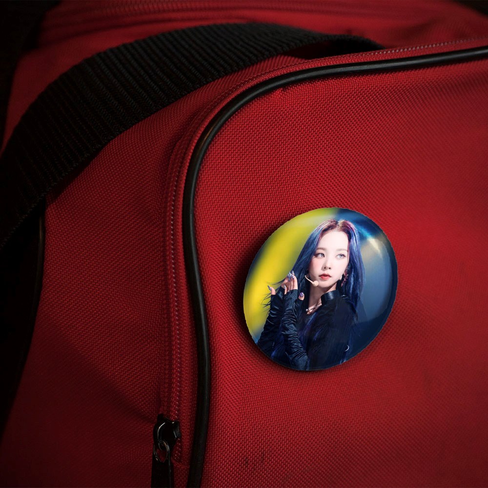 پیکسل 44 میلی متری کارینا گروه گروه آسپا Aespa خندالو با روکش سلفون حرارتی مات مخملی ضدخش و قطعه پشتی رنگی تولید شده است.پلاستیکی پشت پیکسل با سوزن یک تکه ثابت و بدون لغزش و جا به جایی، ایستایی بسیار بهتری نسبت به پشتی فلزی پیکسل دارند که این مهم در تولید این محصول نیز رعایت شده است.