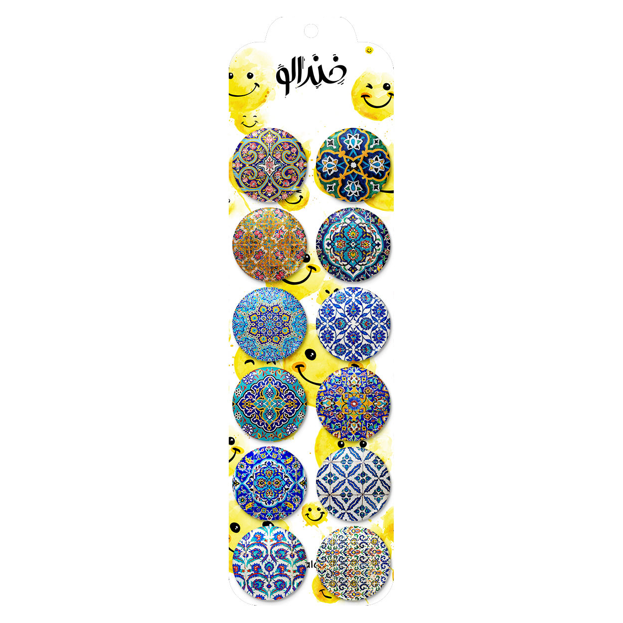 پک 12 عددی پیکسل خندالو طرح کاشی با روکش سلفون حرارتی براق ضدخش و قطعه پشتی رنگی تولید شده است. قطعات پشتی از میان 6 رنگ سفید، مشکی، صورتی، زرد، آبی و قرمز که با توجه به نوع و رنگبندی طرح روی پیکسل انتخاب شده اند تولید می شود و در هر بسته بندی مطابق عکس محصول می باشد. قطعات پلاستیکی پشت پیکسل با سوزن یک تکه ثابت و بدون لغزش و جا به جایی، ایستایی بسیار بهتری نسبت به پشتی فلزی پیکسل دارند که این مهم در تولید این محصول نیز رعایت شده است. چاپ پیکسل طرح کاشی بسته ۱۲ عددی نیز با دستگاه های استاندارد و با بهترین سطح کیفی صورت گرفته و طرح با شفافیتی مثال زدنی و با سلفونی بدون شکست نور بر روی پیکسل نقش بسته است.
