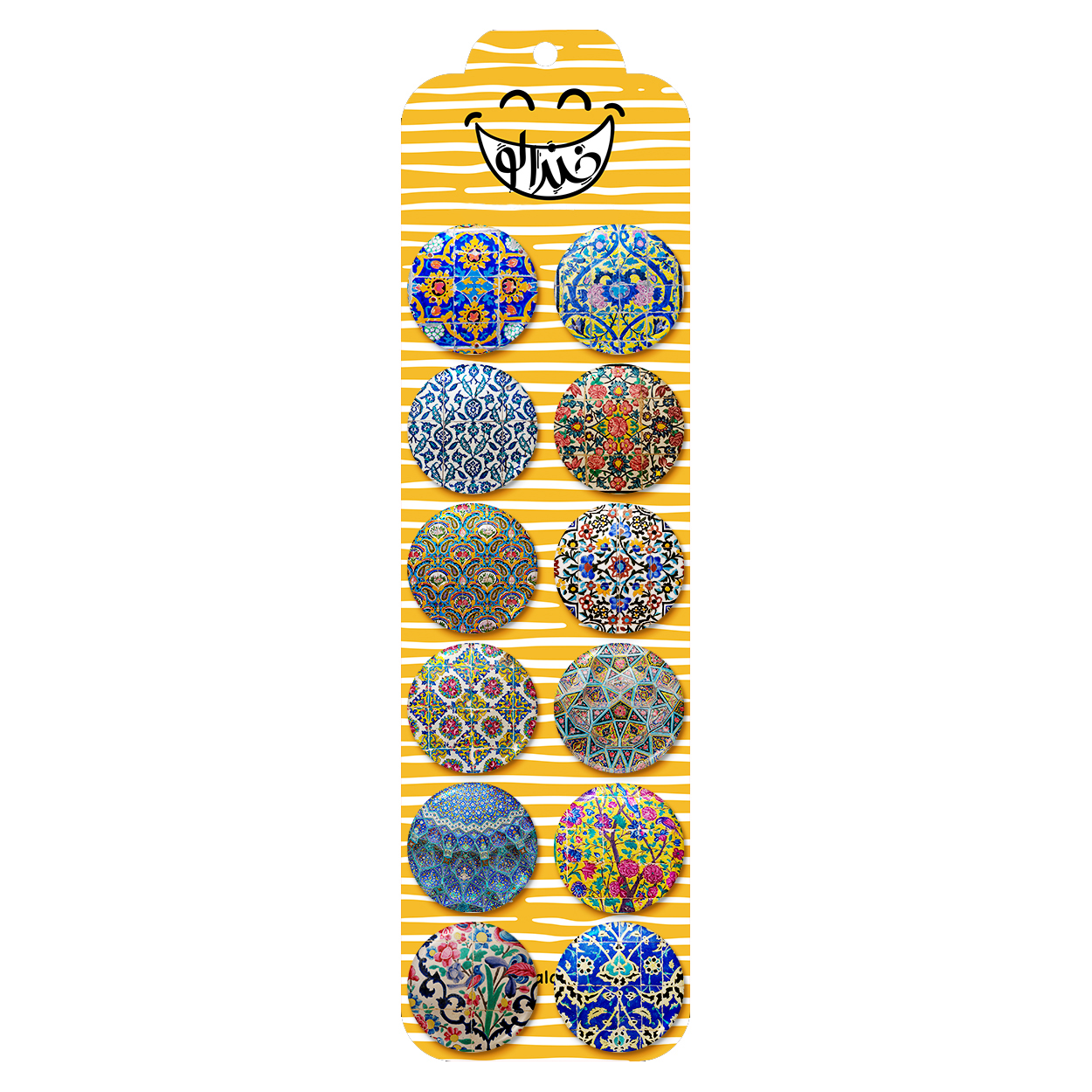 پک 12 عددی پیکسل خندالو طرح کاشی با روکش سلفون حرارتی براق ضدخش و قطعه پشتی رنگی تولید شده است. قطعات پشتی از میان 6 رنگ سفید، مشکی، صورتی، زرد، آبی و قرمز که با توجه به نوع و رنگبندی طرح روی پیکسل انتخاب شده اند تولید می شود و در هر بسته بندی مطابق عکس محصول می باشد. قطعات پلاستیکی پشت پیکسل با سوزن یک تکه ثابت و بدون لغزش و جا به جایی، ایستایی بسیار بهتری نسبت به پشتی فلزی پیکسل دارند که این مهم در تولید این محصول نیز رعایت شده است. چاپ پیکسل طرح کاشی بسته ۱۲ عددی نیز با دستگاه های استاندارد و با بهترین سطح کیفی صورت گرفته و طرح با شفافیتی مثال زدنی و با سلفونی بدون شکست نور بر روی پیکسل نقش بسته است.