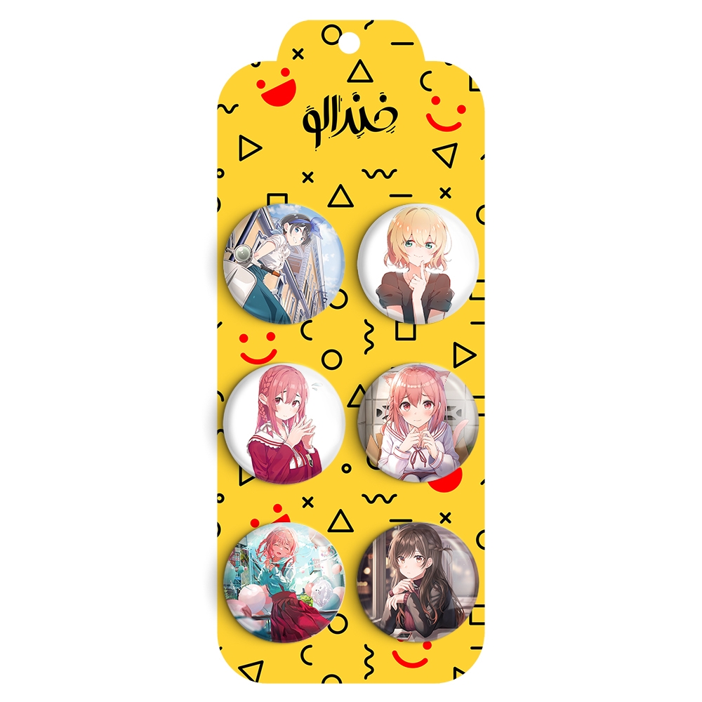 مجموعه 6 عددی پیکسل خندالو طرح کانوجو اوکاری (Kanojo Okarishimasu) با روکش سلفون حرارتی براق ضدخش و قطعه پشتی رنگی تولید شده است. قطعات پشتی از میان 6 رنگ سفید، مشکی، صورتی، زرد، آبی و قرمز که با توجه به نوع و رنگبندی طرح روی پیکسل انتخاب شده اند تولید می شود و در هر بسته بندی مطابق عکس محصول می باشد.