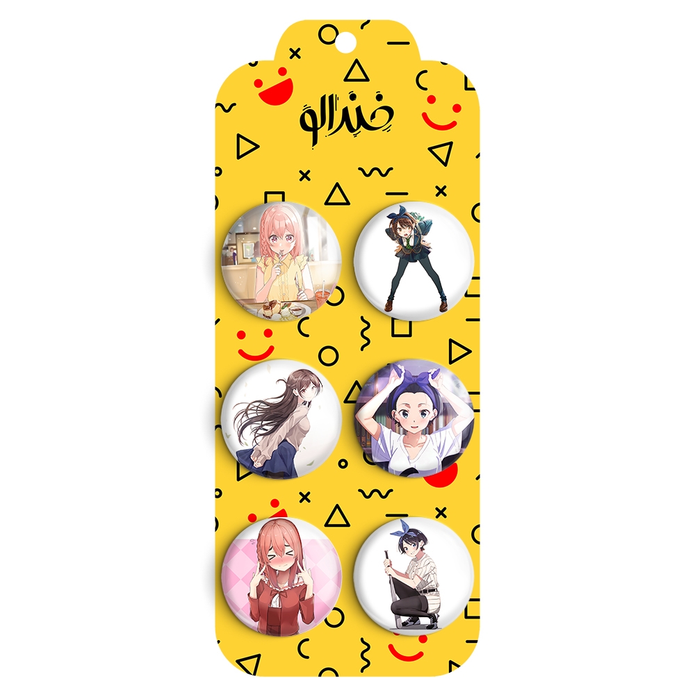 مجموعه 6 عددی پیکسل خندالو طرح کانوجو اوکاری (Kanojo Okarishimasu) با روکش سلفون حرارتی براق ضدخش و قطعه پشتی رنگی تولید شده است. قطعات پشتی از میان 6 رنگ سفید، مشکی، صورتی، زرد، آبی و قرمز که با توجه به نوع و رنگبندی طرح روی پیکسل انتخاب شده اند تولید می شود و در هر بسته بندی مطابق عکس محصول می باشد.