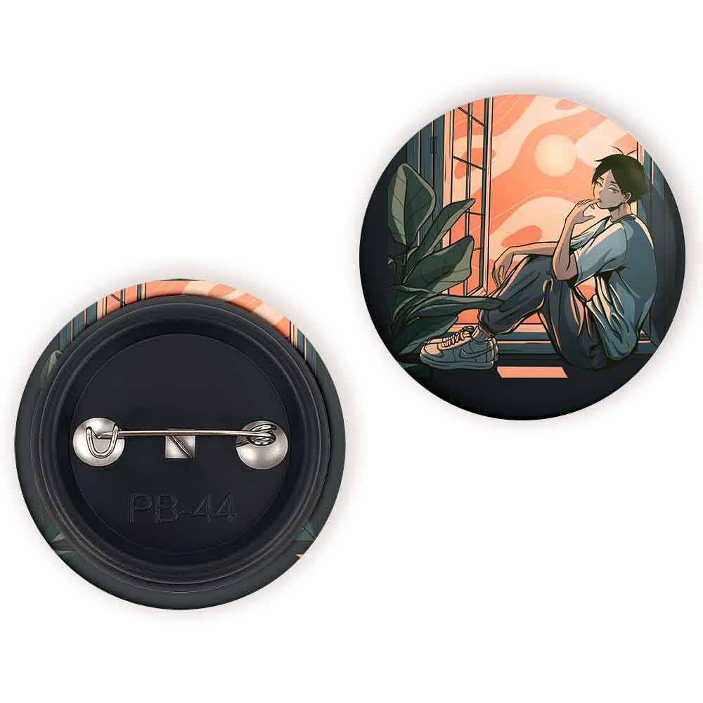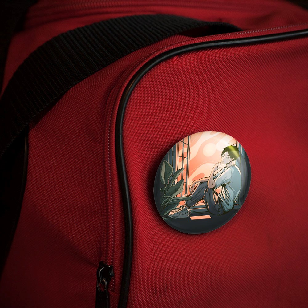 پیکسل 44 میلی متری کاگیاما انیمه هایکیو Haikyu خندالو با روکش سلفون حرارتی مات مخملی ضدخش و قطعه پشتی رنگی تولید شده است.پلاستیکی پشت پیکسل با سوزن یک تکه ثابت و بدون لغزش و جا به جایی، ایستایی بسیار بهتری نسبت به پشتی فلزی پیکسل دارند که این مهم در تولید این محصول نیز رعایت شده است.