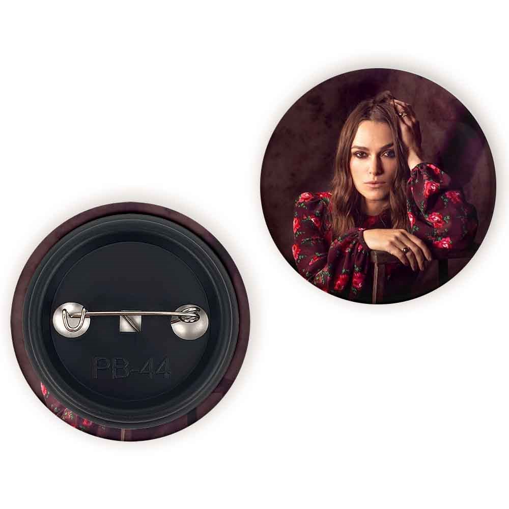 پیکسل 44 میلی متری کایرا نایتلی Keira Knightley خندالو با روکش سلفون حرارتی مات مخملی ضدخش و قطعه پشتی رنگی تولید شده است.پلاستیکی پشت پیکسل با سوزن یک تکه ثابت و بدون لغزش و جا به جایی، ایستایی بسیار بهتری نسبت به پشتی فلزی پیکسل دارند که این مهم در تولید این محصول نیز رعایت شده است.