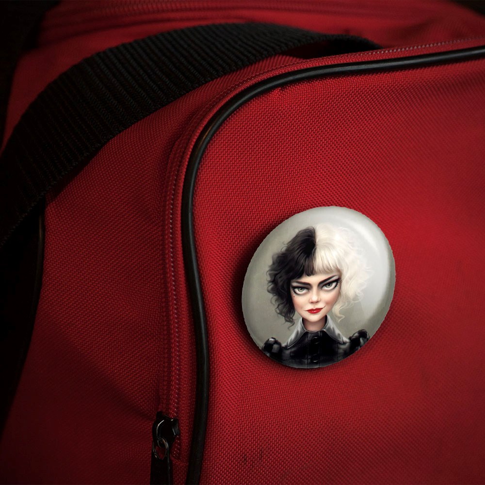 پیکسل 44 میلی متری کروئلا Cruella خندالو با روکش سلفون حرارتی مات مخملی ضدخش و قطعه پشتی رنگی تولید شده است.پلاستیکی پشت پیکسل با سوزن یک تکه ثابت و بدون لغزش و جا به جایی، ایستایی بسیار بهتری نسبت به پشتی فلزی پیکسل دارند که این مهم در تولید این محصول نیز رعایت شده است.