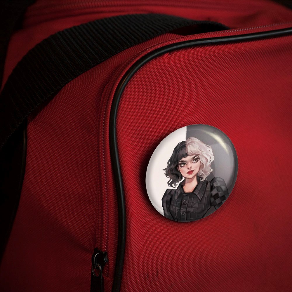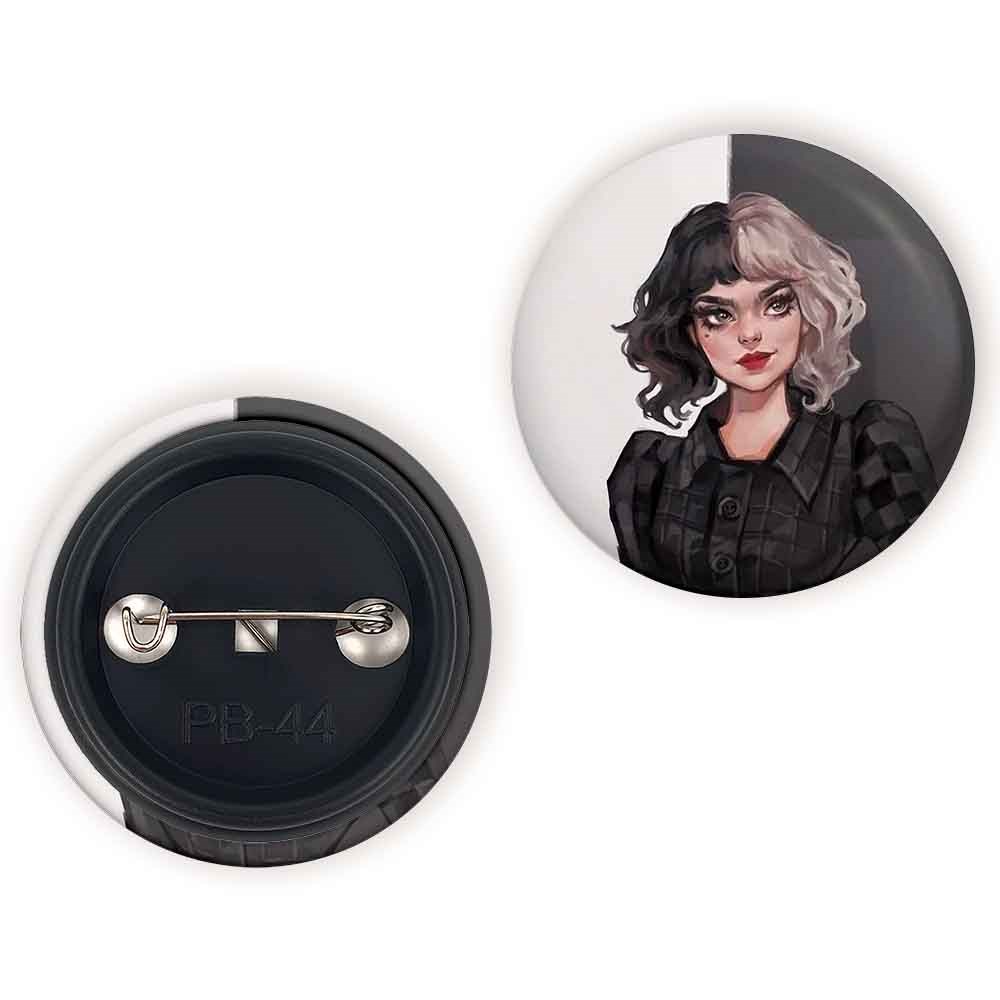 پیکسل 44 میلی متری کروئلا Cruella خندالو با روکش سلفون حرارتی مات مخملی ضدخش و قطعه پشتی رنگی تولید شده است.پلاستیکی پشت پیکسل با سوزن یک تکه ثابت و بدون لغزش و جا به جایی، ایستایی بسیار بهتری نسبت به پشتی فلزی پیکسل دارند که این مهم در تولید این محصول نیز رعایت شده است.
