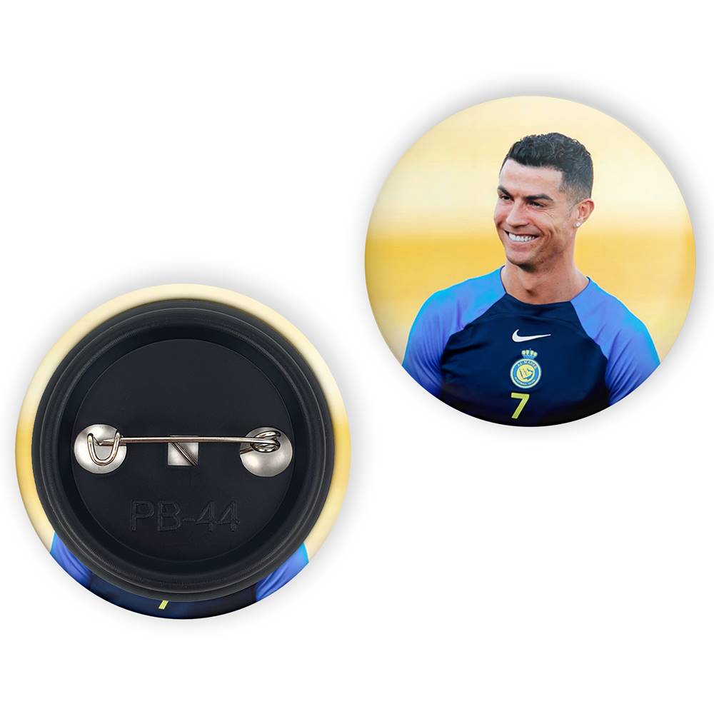 پیکسل 44 میلی متری کریستیانو رونالدوخندالو با روکش سلفون حرارتی مات مخملی ضدخش و قطعه پشتی رنگی تولید شده است. قطعات پلاستیکی پشت پیکسل با سوزن یک تکه ثابت و بدون لغزش و جا به جایی، ایستایی بسیار بهتری نسبت به پشتی فلزی پیکسل دارند که این مهم در تولید این محصول نیز رعایت شده است.