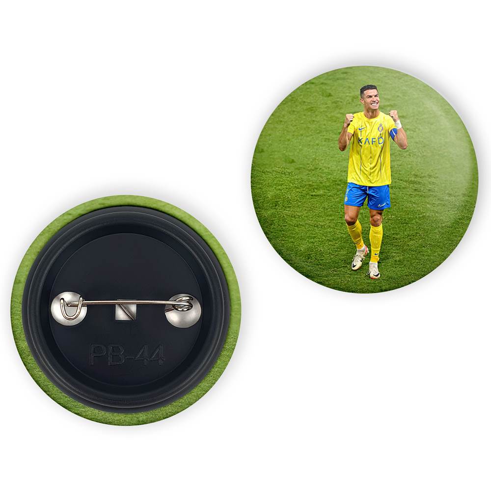 پیکسل 44 میلی متری کریستیانو رونالدوخندالو با روکش سلفون حرارتی مات مخملی ضدخش و قطعه پشتی رنگی تولید شده است. قطعات پلاستیکی پشت پیکسل با سوزن یک تکه ثابت و بدون لغزش و جا به جایی، ایستایی بسیار بهتری نسبت به پشتی فلزی پیکسل دارند که این مهم در تولید این محصول نیز رعایت شده است.
