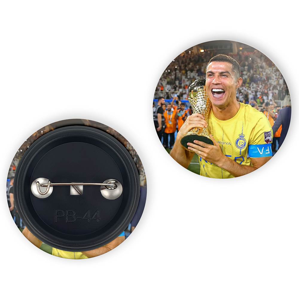 پیکسل 44 میلی متری کریستیانو رونالدوخندالو با روکش سلفون حرارتی مات مخملی ضدخش و قطعه پشتی رنگی تولید شده است. قطعات پلاستیکی پشت پیکسل با سوزن یک تکه ثابت و بدون لغزش و جا به جایی، ایستایی بسیار بهتری نسبت به پشتی فلزی پیکسل دارند که این مهم در تولید این محصول نیز رعایت شده است.