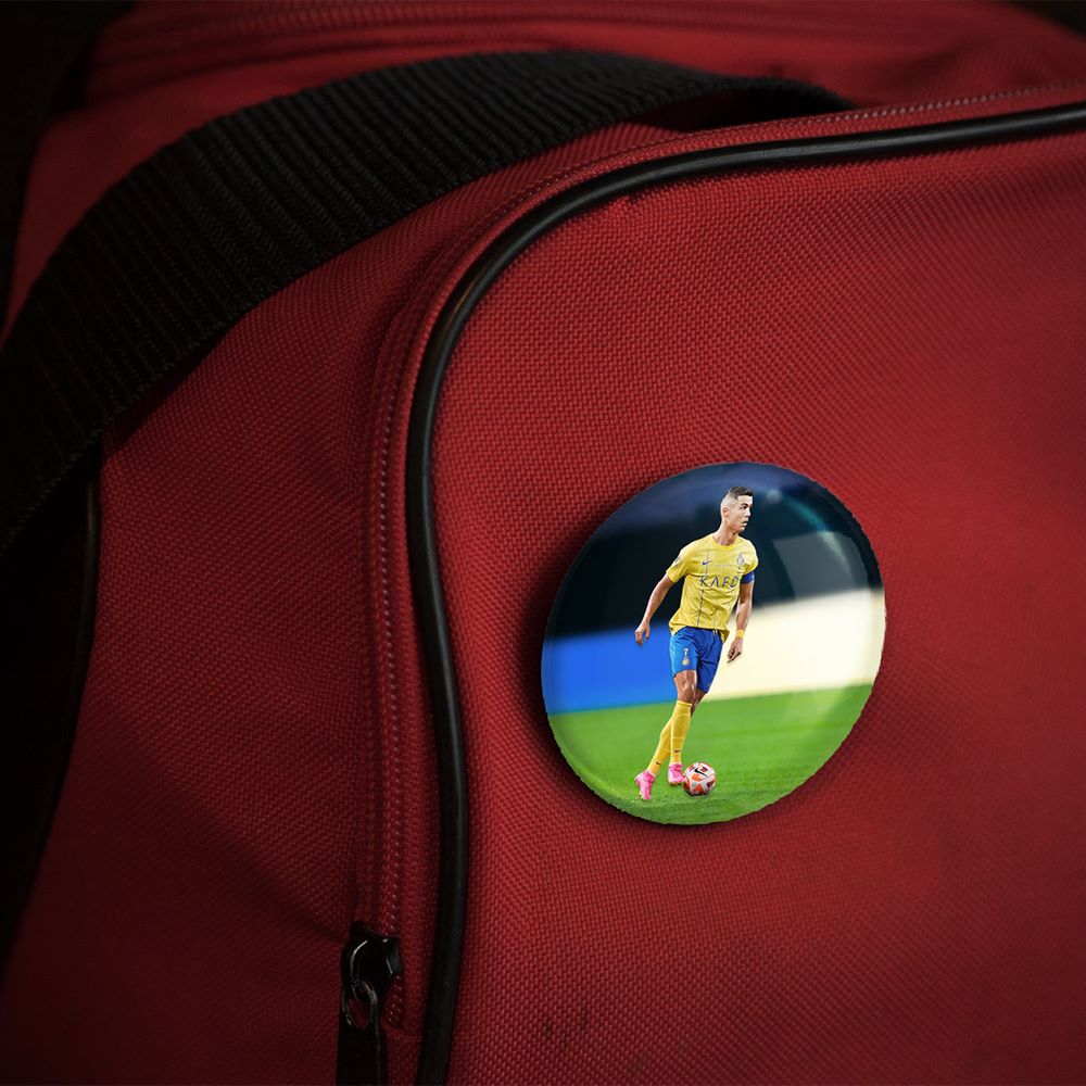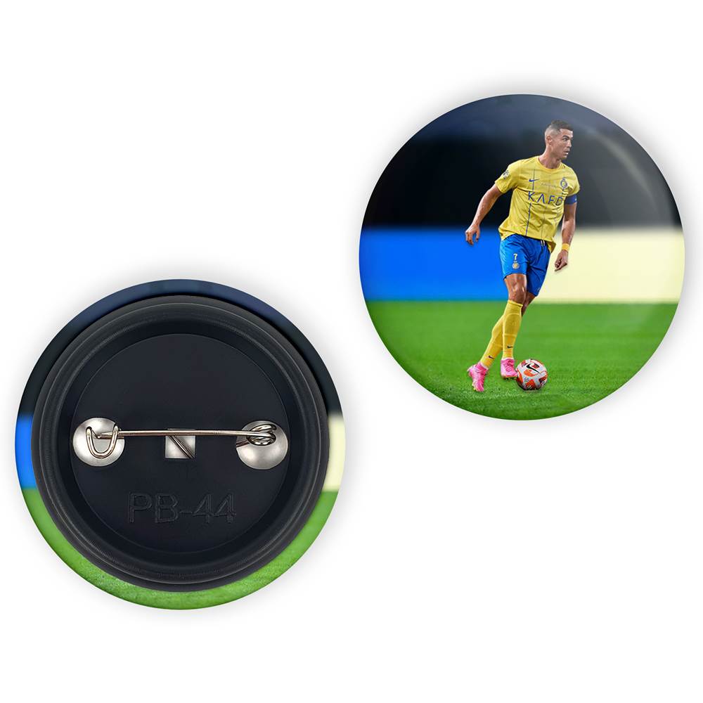 پیکسل 44 میلی متری کریستیانو رونالدوخندالو با روکش سلفون حرارتی مات مخملی ضدخش و قطعه پشتی رنگی تولید شده است. قطعات پلاستیکی پشت پیکسل با سوزن یک تکه ثابت و بدون لغزش و جا به جایی، ایستایی بسیار بهتری نسبت به پشتی فلزی پیکسل دارند که این مهم در تولید این محصول نیز رعایت شده است.