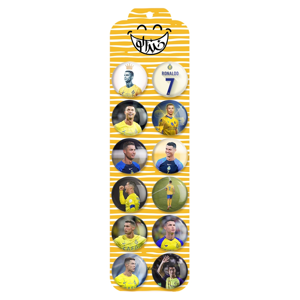 پک 12 عددی پیکسل خندالو طرح کریستیانو رونالدو با روکش سلفون حرارتی براق ضدخش و قطعه پشتی رنگی تولید شده است. قطعات پشتی از میان 6 رنگ سفید، مشکی، صورتی، زرد، آبی و قرمز که با توجه به نوع و رنگبندی طرح روی پیکسل انتخاب شده اند تولید می شود و در هر بسته بندی مطابق عکس محصول می باشد. قطعات پلاستیکی پشت پیکسل با سوزن یک تکه ثابت و بدون لغزش و جا به جایی، ایستایی بسیار بهتری نسبت به پشتی فلزی پیکسل دارند که این مهم در تولید این محصول نیز رعایت شده است.