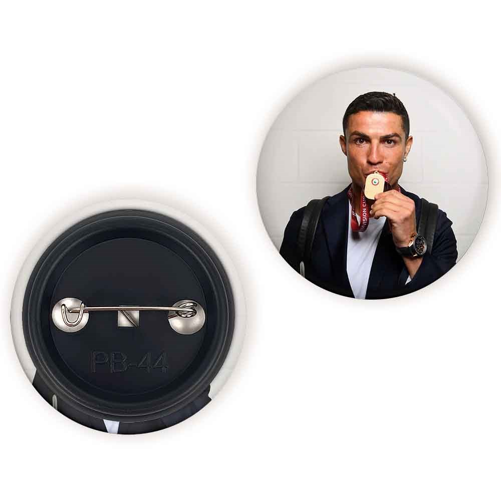 پیکسل 44 میلی متری کریستیانو رونالدو خندالو با روکش سلفون حرارتی مات مخملی ضدخش و قطعه پشتی رنگی تولید شده است.پلاستیکی پشت پیکسل با سوزن یک تکه ثابت و بدون لغزش و جا به جایی، ایستایی بسیار بهتری نسبت به پشتی فلزی پیکسل دارند که این مهم در تولید این محصول نیز رعایت شده است.