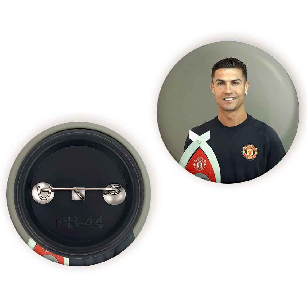 پیکسل 44 میلی متری کریستیانو رونالدو خندالو با روکش سلفون حرارتی مات مخملی ضدخش و قطعه پشتی رنگی تولید شده است.پلاستیکی پشت پیکسل با سوزن یک تکه ثابت و بدون لغزش و جا به جایی، ایستایی بسیار بهتری نسبت به پشتی فلزی پیکسل دارند که این مهم در تولید این محصول نیز رعایت شده است.