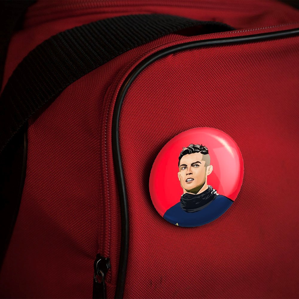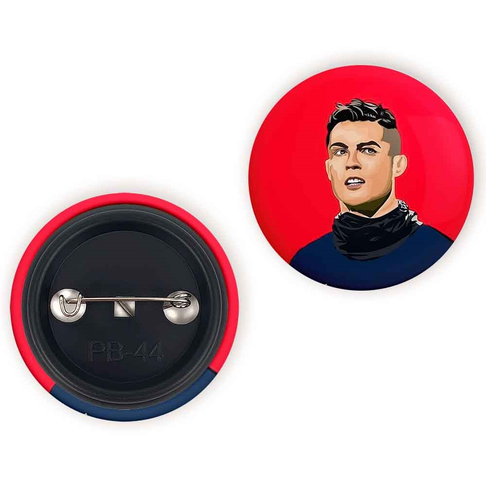 پیکسل 44 میلی متری کریستیانو رونالدو خندالو با روکش سلفون حرارتی مات مخملی ضدخش و قطعه پشتی رنگی تولید شده است.پلاستیکی پشت پیکسل با سوزن یک تکه ثابت و بدون لغزش و جا به جایی، ایستایی بسیار بهتری نسبت به پشتی فلزی پیکسل دارند که این مهم در تولید این محصول نیز رعایت شده است.
