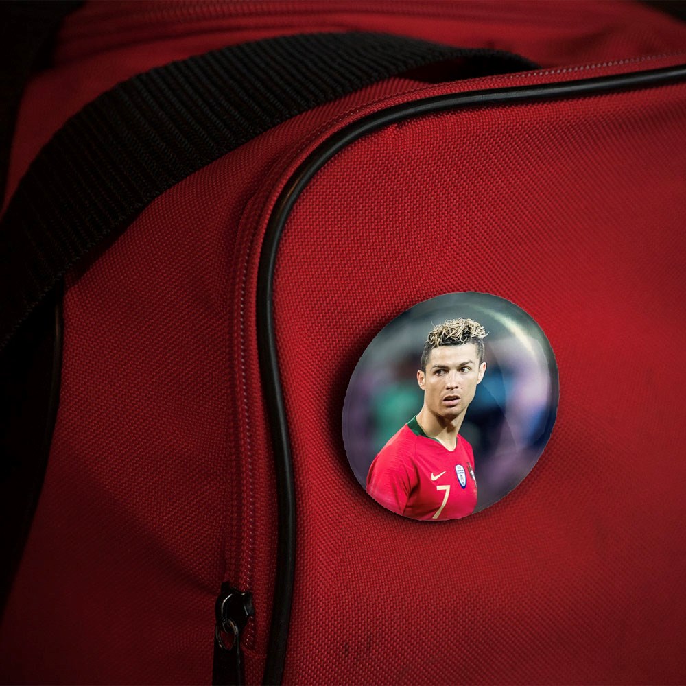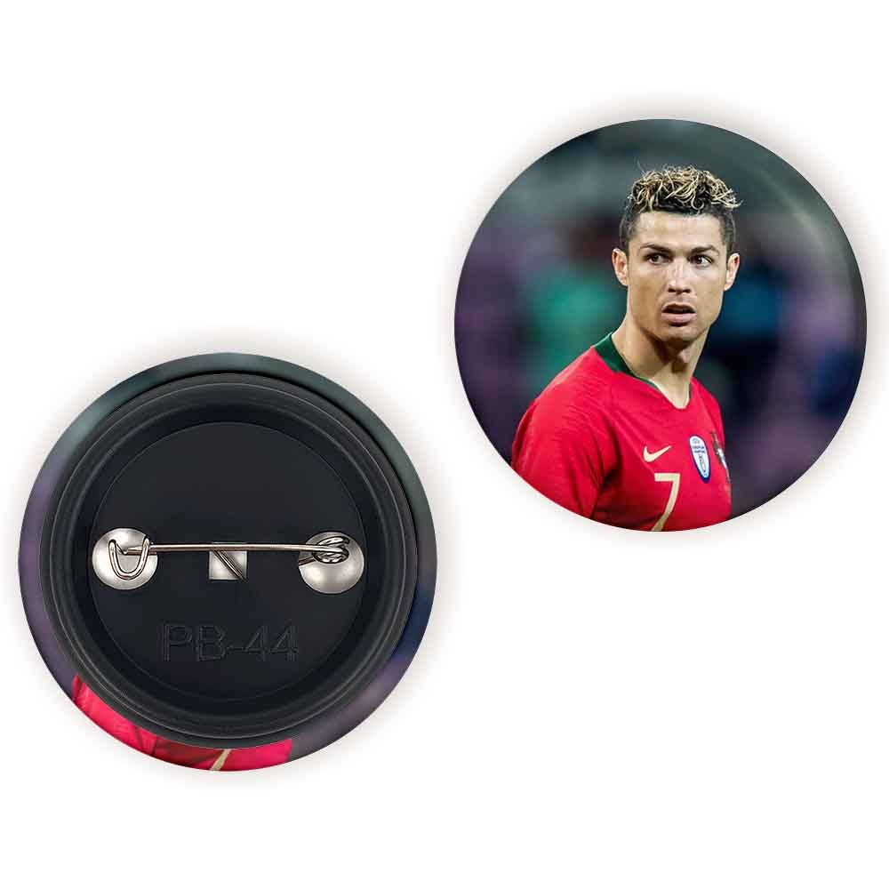 پیکسل 44 میلی متری کریستیانو رونالدو خندالو با روکش سلفون حرارتی مات مخملی ضدخش و قطعه پشتی رنگی تولید شده است.پلاستیکی پشت پیکسل با سوزن یک تکه ثابت و بدون لغزش و جا به جایی، ایستایی بسیار بهتری نسبت به پشتی فلزی پیکسل دارند که این مهم در تولید این محصول نیز رعایت شده است.