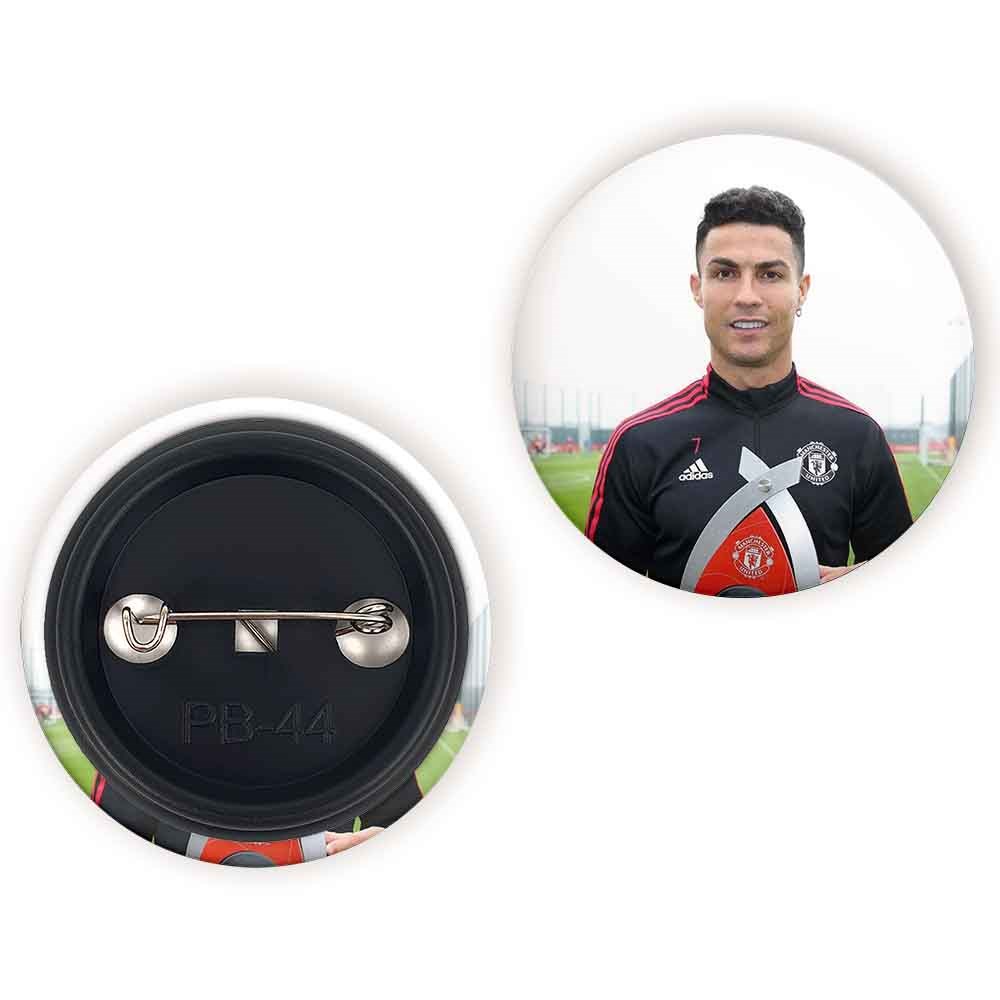 پیکسل 44 میلی متری کریستیانو رونالدو خندالو با روکش سلفون حرارتی مات مخملی ضدخش و قطعه پشتی رنگی تولید شده است.پلاستیکی پشت پیکسل با سوزن یک تکه ثابت و بدون لغزش و جا به جایی، ایستایی بسیار بهتری نسبت به پشتی فلزی پیکسل دارند که این مهم در تولید این محصول نیز رعایت شده است.