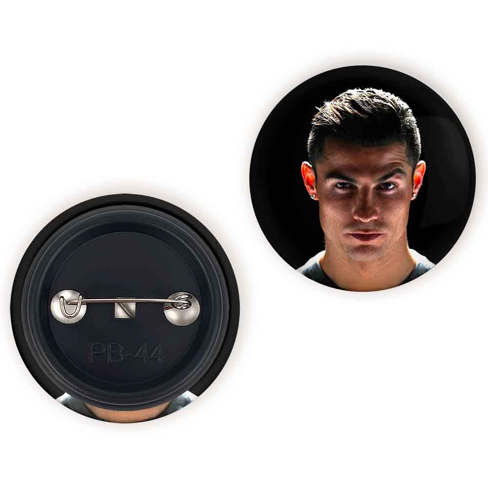 پیکسل 44 میلی متری کریستیانو رونالدو خندالو با روکش سلفون حرارتی مات مخملی ضدخش و قطعه پشتی رنگی تولید شده است.پلاستیکی پشت پیکسل با سوزن یک تکه ثابت و بدون لغزش و جا به جایی، ایستایی بسیار بهتری نسبت به پشتی فلزی پیکسل دارند که این مهم در تولید این محصول نیز رعایت شده است.