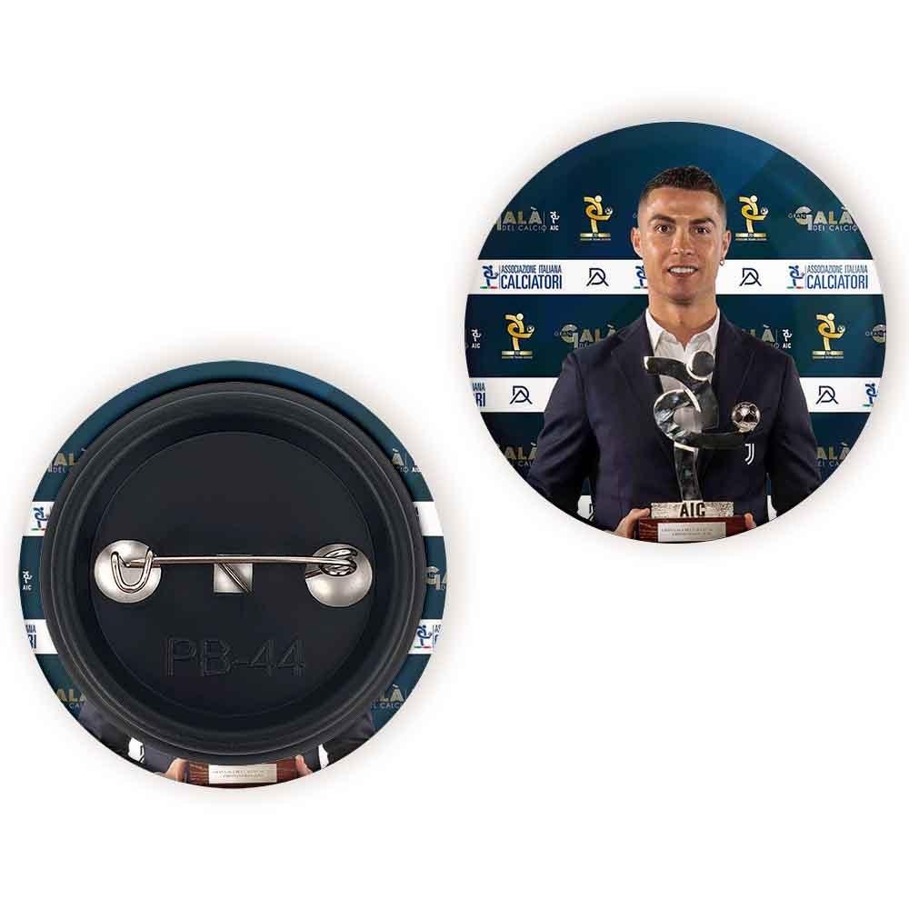پیکسل 44 میلی متری کریستیانو رونالدو خندالو با روکش سلفون حرارتی مات مخملی ضدخش و قطعه پشتی رنگی تولید شده است.پلاستیکی پشت پیکسل با سوزن یک تکه ثابت و بدون لغزش و جا به جایی، ایستایی بسیار بهتری نسبت به پشتی فلزی پیکسل دارند که این مهم در تولید این محصول نیز رعایت شده است.