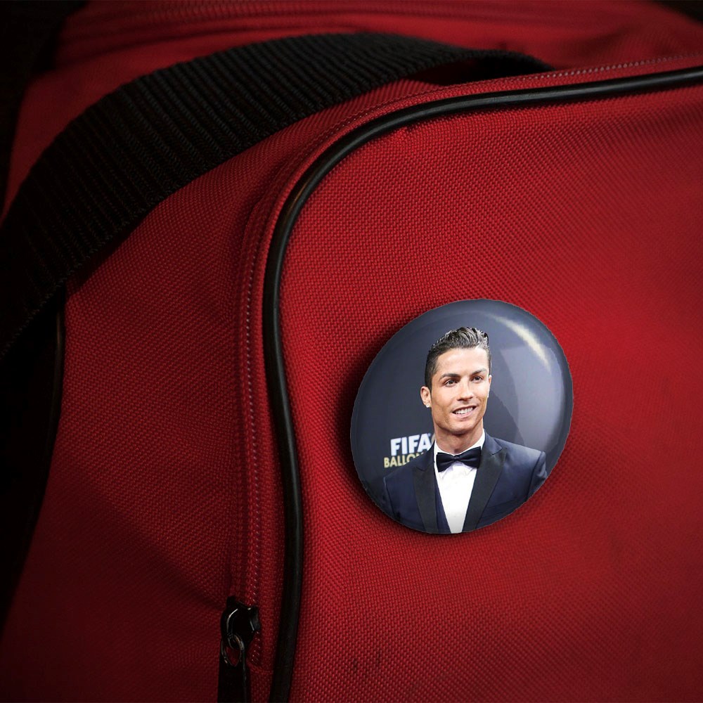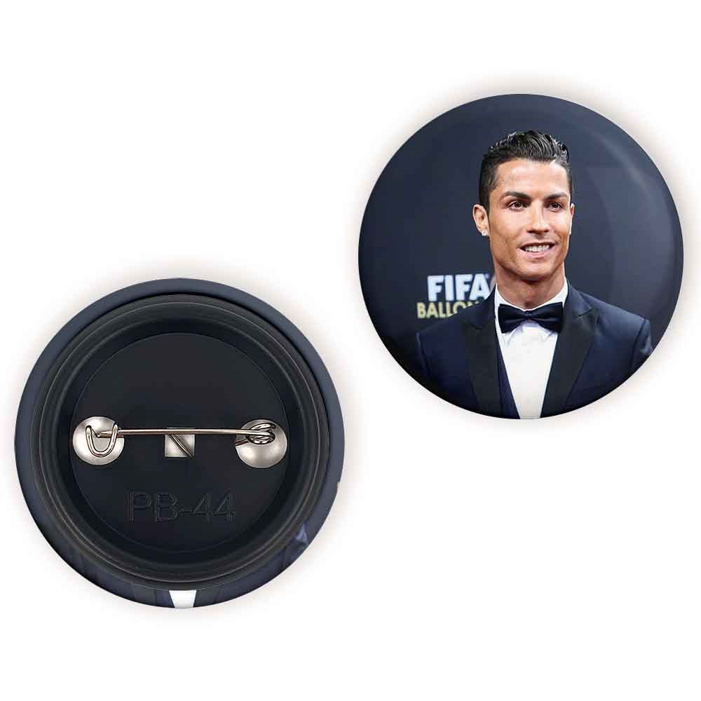 پیکسل 44 میلی متری کریستیانو رونالدو خندالو با روکش سلفون حرارتی مات مخملی ضدخش و قطعه پشتی رنگی تولید شده است.پلاستیکی پشت پیکسل با سوزن یک تکه ثابت و بدون لغزش و جا به جایی، ایستایی بسیار بهتری نسبت به پشتی فلزی پیکسل دارند که این مهم در تولید این محصول نیز رعایت شده است.