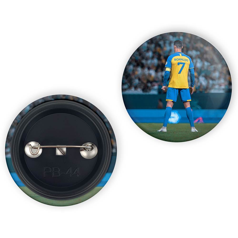 پیکسل 44 میلی متری کریستیانو رونالدوخندالو با روکش سلفون حرارتی مات مخملی ضدخش و قطعه پشتی رنگی تولید شده است. قطعات پلاستیکی پشت پیکسل با سوزن یک تکه ثابت و بدون لغزش و جا به جایی، ایستایی بسیار بهتری نسبت به پشتی فلزی پیکسل دارند که این مهم در تولید این محصول نیز رعایت شده است.