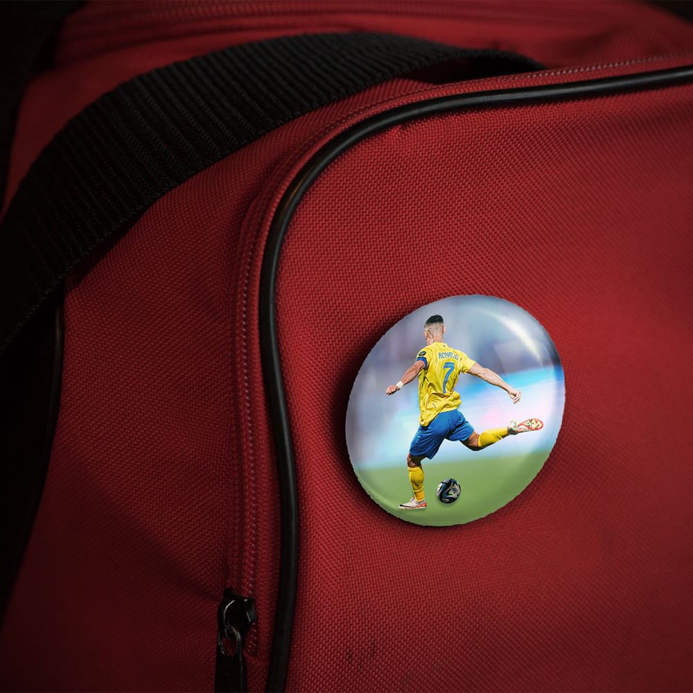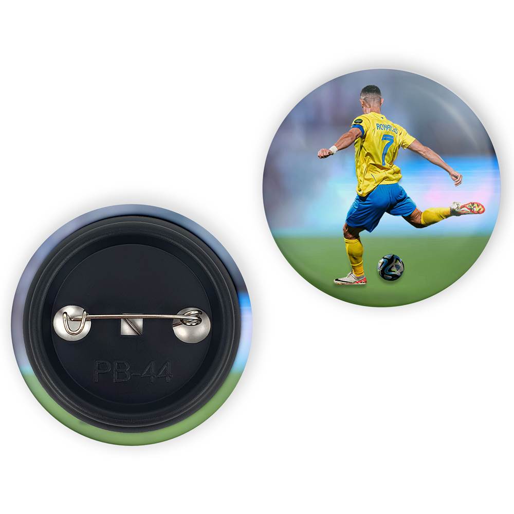 پیکسل 44 میلی متری کریستیانو رونالدوخندالو با روکش سلفون حرارتی مات مخملی ضدخش و قطعه پشتی رنگی تولید شده است. قطعات پلاستیکی پشت پیکسل با سوزن یک تکه ثابت و بدون لغزش و جا به جایی، ایستایی بسیار بهتری نسبت به پشتی فلزی پیکسل دارند که این مهم در تولید این محصول نیز رعایت شده است.