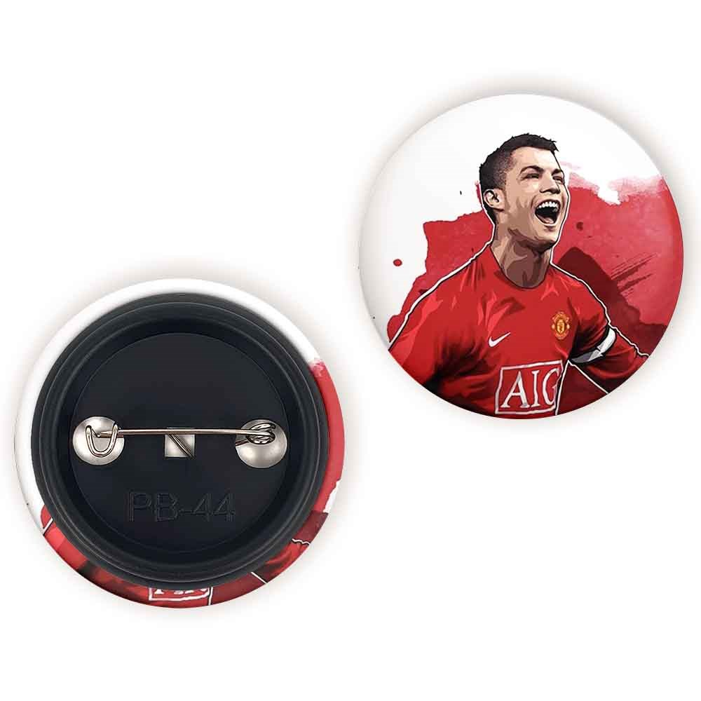 پیکسل 44 میلی متری کریستیانو رونالدو خندالو با روکش سلفون حرارتی مات مخملی ضدخش و قطعه پشتی رنگی تولید شده است.پلاستیکی پشت پیکسل با سوزن یک تکه ثابت و بدون لغزش و جا به جایی، ایستایی بسیار بهتری نسبت به پشتی فلزی پیکسل دارند که این مهم در تولید این محصول نیز رعایت شده است.