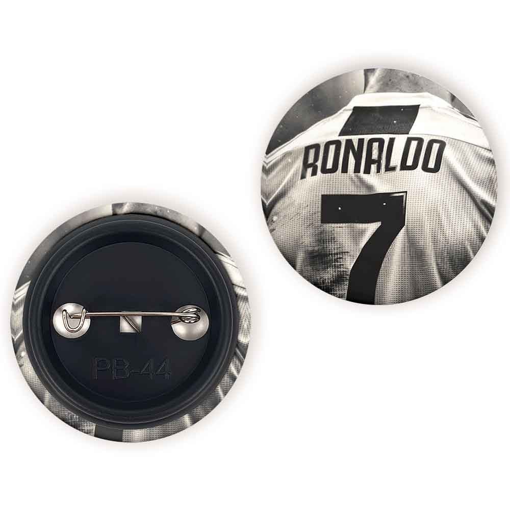 پیکسل 44 میلی متری کریستین رونالدو خندالو با روکش سلفون حرارتی مات مخملی ضدخش و قطعه پشتی رنگی تولید شده است.پلاستیکی پشت پیکسل با سوزن یک تکه ثابت و بدون لغزش و جا به جایی، ایستایی بسیار بهتری نسبت به پشتی فلزی پیکسل دارند که این مهم در تولید این محصول نیز رعایت شده است.