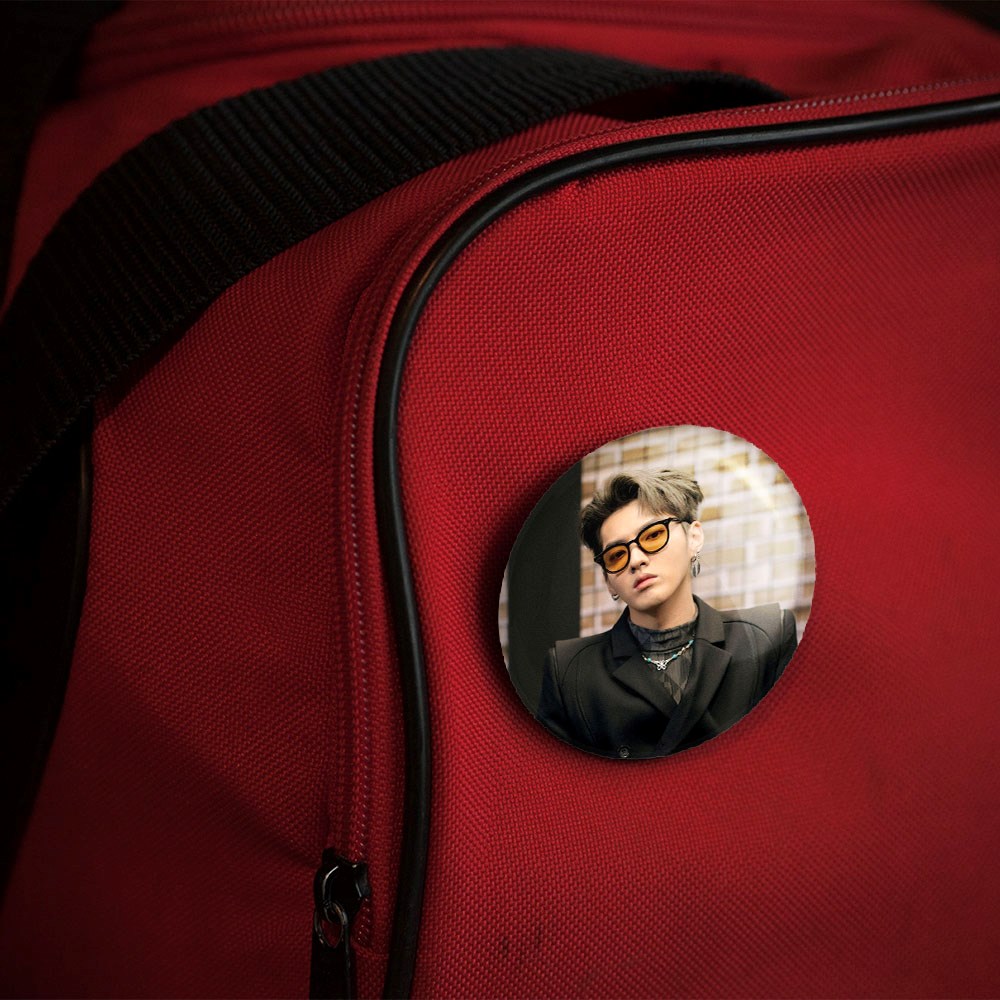 پیکسل 44 میلی متری کریس وو گروه اکسو EXO خندالو با روکش سلفون حرارتی مات مخملی ضدخش و قطعه پشتی رنگی تولید شده است.پلاستیکی پشت پیکسل با سوزن یک تکه ثابت و بدون لغزش و جا به جایی، ایستایی بسیار بهتری نسبت به پشتی فلزی پیکسل دارند که این مهم در تولید این محصول نیز رعایت شده است.
