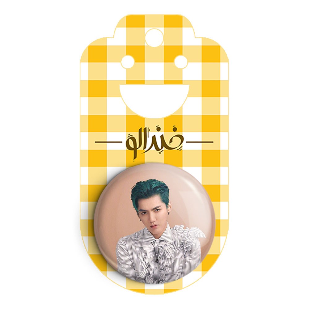 پیکسل 44 میلی متری کریس وو گروه اکسو EXO خندالو با روکش سلفون حرارتی مات مخملی ضدخش و قطعه پشتی رنگی تولید شده است.پلاستیکی پشت پیکسل با سوزن یک تکه ثابت و بدون لغزش و جا به جایی، ایستایی بسیار بهتری نسبت به پشتی فلزی پیکسل دارند که این مهم در تولید این محصول نیز رعایت شده است.