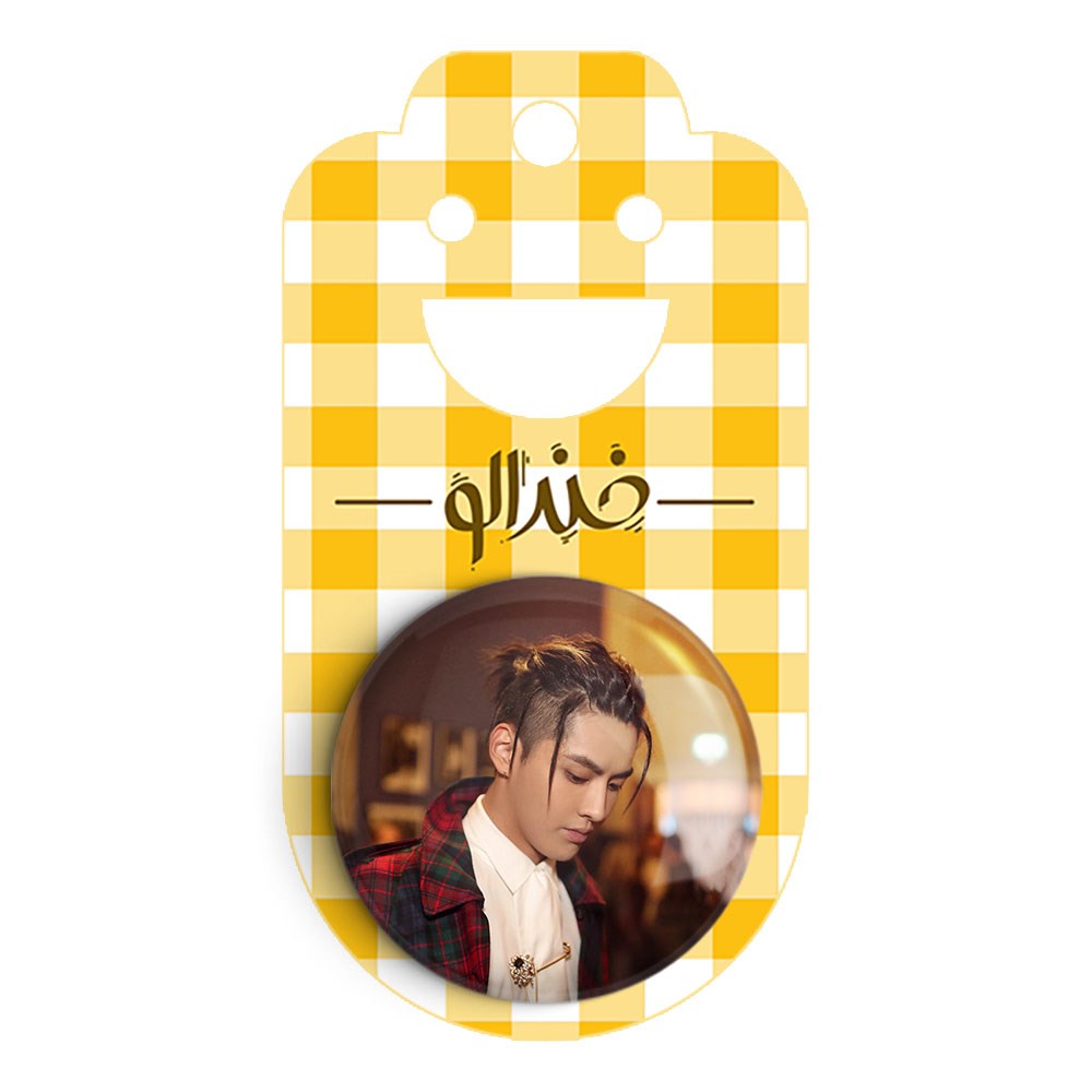 پیکسل 44 میلی متری کریس وو گروه اکسو EXO خندالو با روکش سلفون حرارتی مات مخملی ضدخش و قطعه پشتی رنگی تولید شده است.پلاستیکی پشت پیکسل با سوزن یک تکه ثابت و بدون لغزش و جا به جایی، ایستایی بسیار بهتری نسبت به پشتی فلزی پیکسل دارند که این مهم در تولید این محصول نیز رعایت شده است.