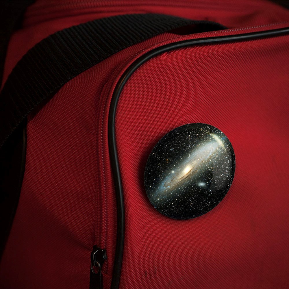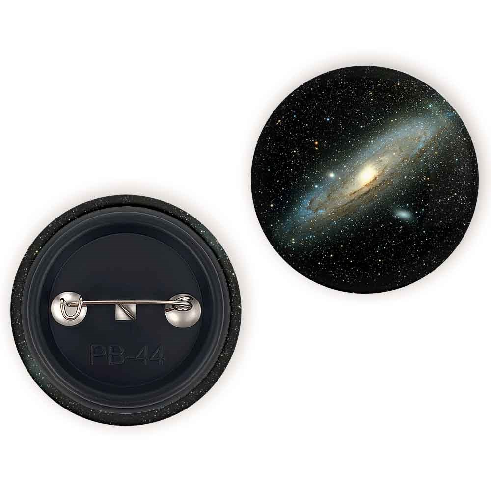 پیکسل 44 میلی متری کهکشان و سیاره ها خندالو با روکش سلفون حرارتی مات مخملی ضدخش و قطعه پشتی رنگی تولید شده است.پلاستیکی پشت پیکسل با سوزن یک تکه ثابت و بدون لغزش و جا به جایی، ایستایی بسیار بهتری نسبت به پشتی فلزی پیکسل دارند که این مهم در تولید این محصول نیز رعایت شده است.
