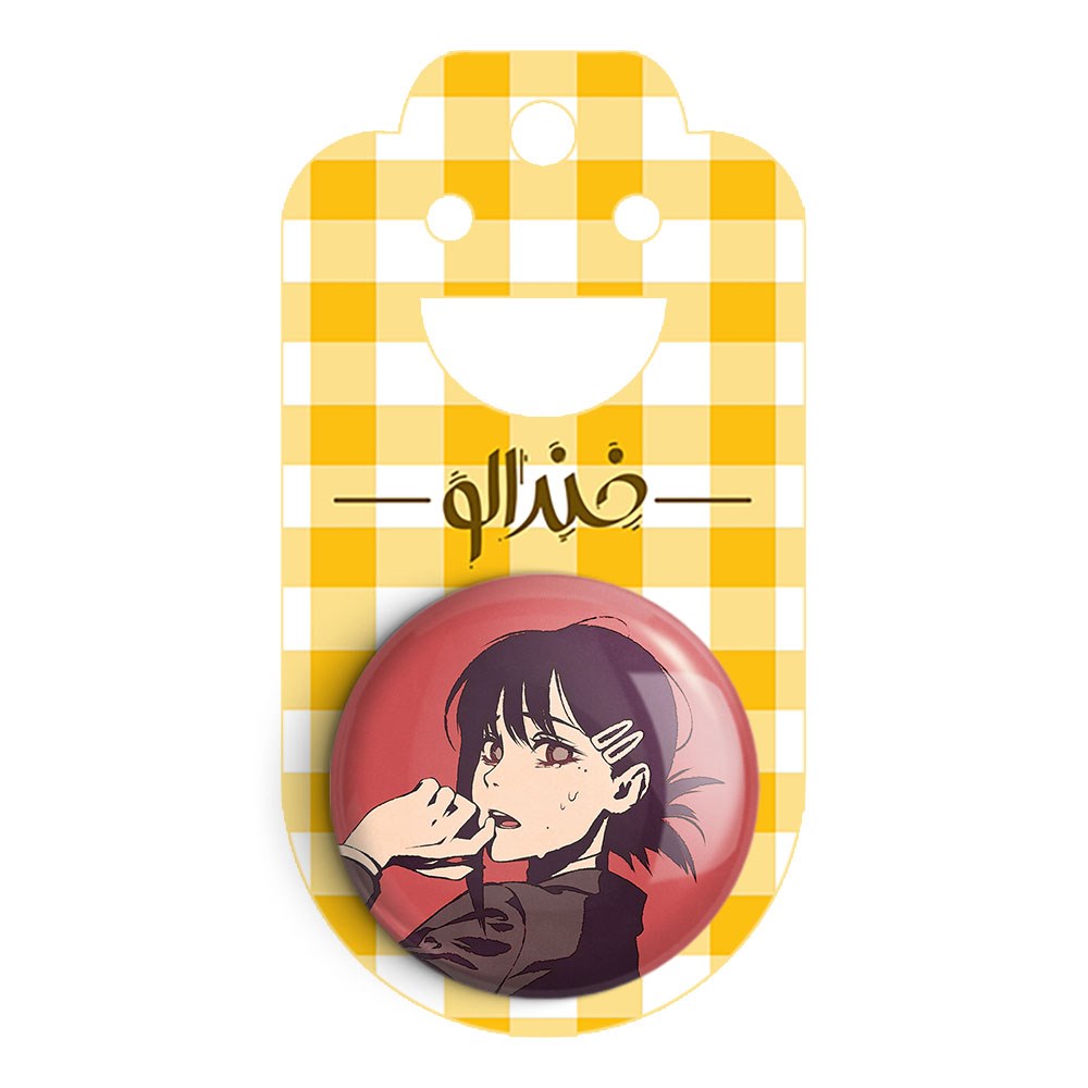 پیکسل 44 میلی متری کوبنی انیمه مرد اره ای Chainsaw Man خندالو با روکش سلفون حرارتی مات مخملی ضدخش و قطعه پشتی رنگی تولید شده است.پلاستیکی پشت پیکسل با سوزن یک تکه ثابت و بدون لغزش و جا به جایی، ایستایی بسیار بهتری نسبت به پشتی فلزی پیکسل دارند که این مهم در تولید این محصول نیز رعایت شده است.