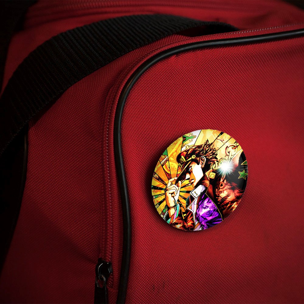 پیکسل 44 میلی متری کوجو جوتارو انیمه جوجو Jojo خندالو با روکش سلفون حرارتی مات مخملی ضدخش و قطعه پشتی رنگی تولید شده است. قطعات پلاستیکی پشت پیکسل با سوزن یک تکه ثابت و بدون لغزش و جا به جایی، ایستایی بسیار بهتری نسبت به پشتی فلزی پیکسل دارند که این مهم در تولید این محصول نیز رعایت شده است. چاپ پیکسل کوجو جوتارو انیمه جوجو Jojo نیز با دستگاه های استاندارد و با بهترین سطح کیفی صورت گرفته و طرح با شفافیتی مثال زدنی و با سلفونی بدون شکست نور بر روی پیکسل نقش بسته است. همچنین بسته بندی جذاب و مینیمال پیکسل کوجو جوتارو انیمه جوجو Jojo ، آنها را مناسب هدیه کرده است.