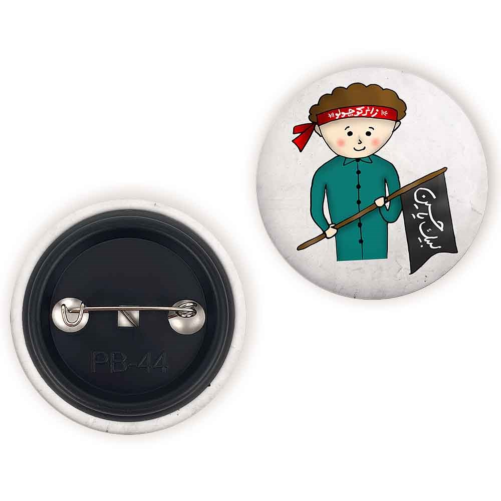 پیکسل 44 میلی متری کودکانه محرم و اربعین امام حسین خندالو با روکش سلفون حرارتی مات مخملی ضدخش و قطعه پشتی رنگی تولید شده است.پلاستیکی پشت پیکسل با سوزن یک تکه ثابت و بدون لغزش و جا به جایی، ایستایی بسیار بهتری نسبت به پشتی فلزی پیکسل دارند که این مهم در تولید این محصول نیز رعایت شده است.