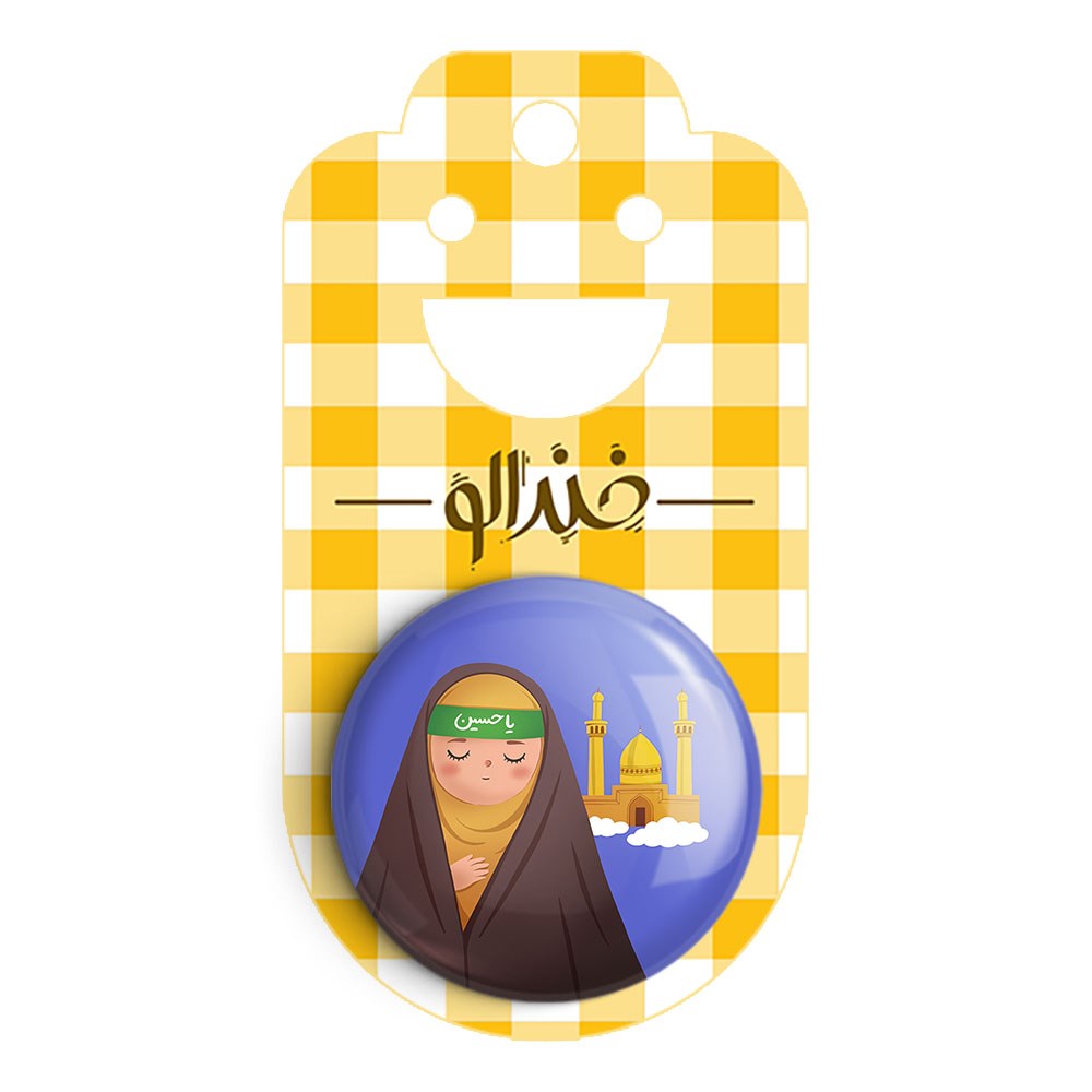 پیکسل 44 میلی متری کودکانه محرم و اربعین امام حسین خندالو با روکش سلفون حرارتی مات مخملی ضدخش و قطعه پشتی رنگی تولید شده است.پلاستیکی پشت پیکسل با سوزن یک تکه ثابت و بدون لغزش و جا به جایی، ایستایی بسیار بهتری نسبت به پشتی فلزی پیکسل دارند که این مهم در تولید این محصول نیز رعایت شده است.