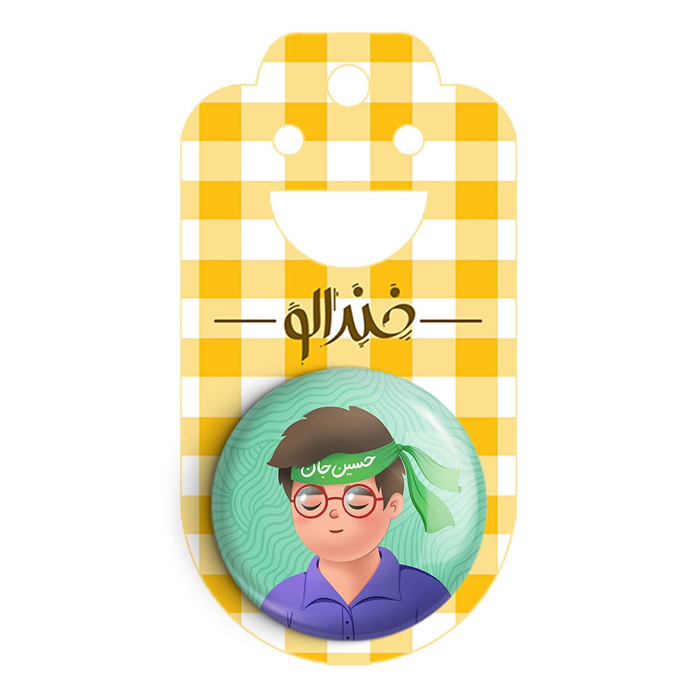 پیکسل 44 میلی متری کودکانه محرم و اربعین امام حسین خندالو با روکش سلفون حرارتی مات مخملی ضدخش و قطعه پشتی رنگی تولید شده است.پلاستیکی پشت پیکسل با سوزن یک تکه ثابت و بدون لغزش و جا به جایی، ایستایی بسیار بهتری نسبت به پشتی فلزی پیکسل دارند که این مهم در تولید این محصول نیز رعایت شده است.