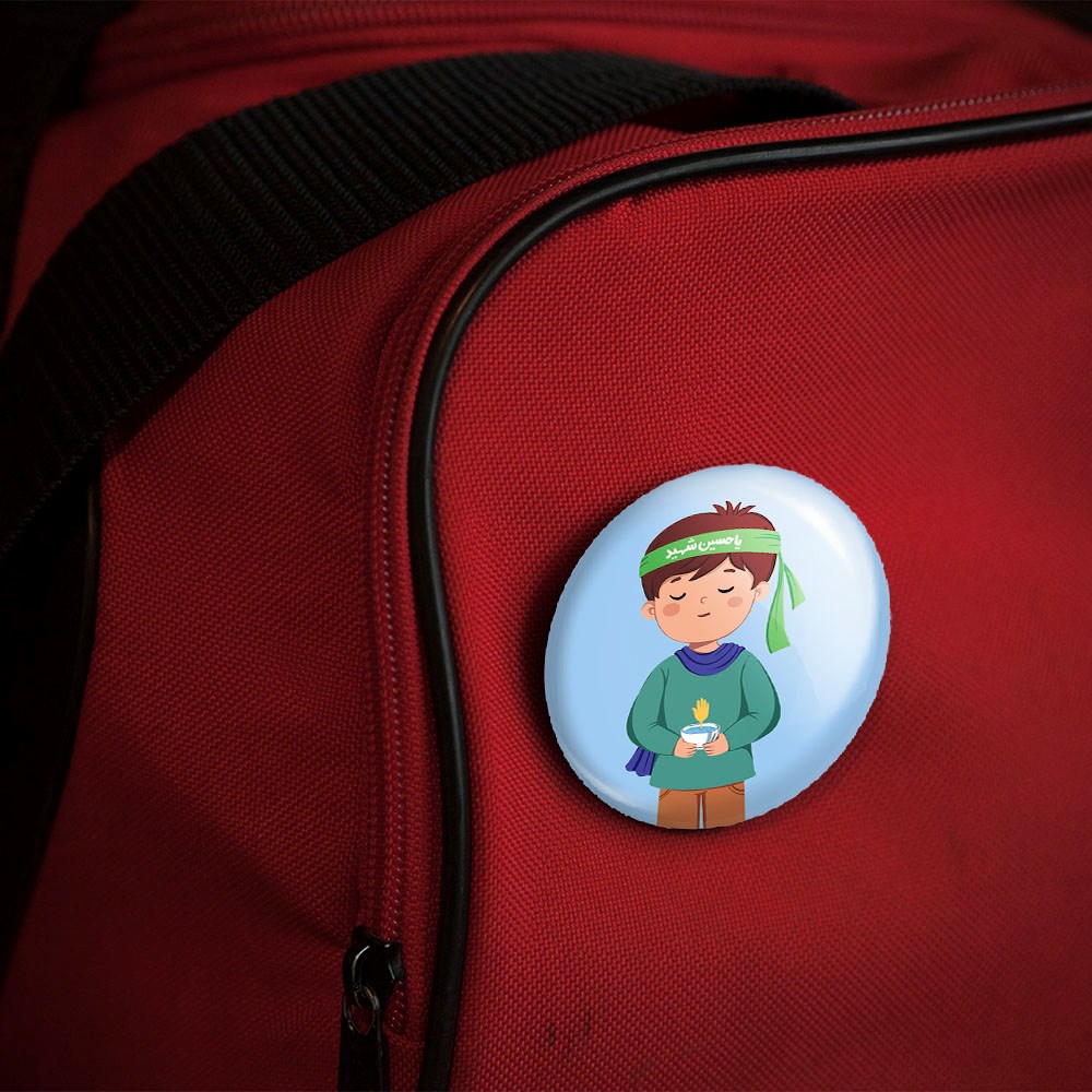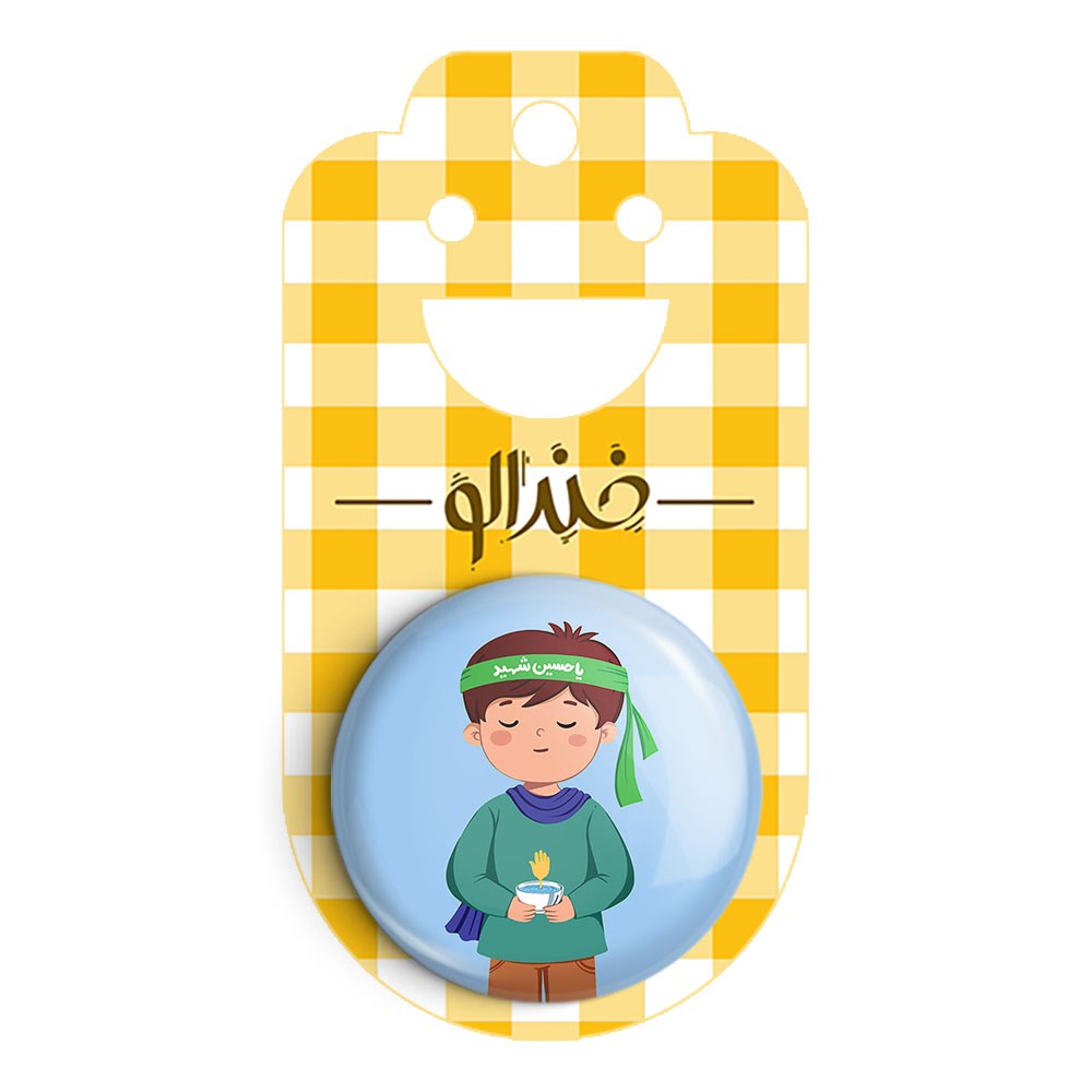 پیکسل 44 میلی متری کودکانه محرم و اربعین امام حسین خندالو با روکش سلفون حرارتی مات مخملی ضدخش و قطعه پشتی رنگی تولید شده است.پلاستیکی پشت پیکسل با سوزن یک تکه ثابت و بدون لغزش و جا به جایی، ایستایی بسیار بهتری نسبت به پشتی فلزی پیکسل دارند که این مهم در تولید این محصول نیز رعایت شده است.